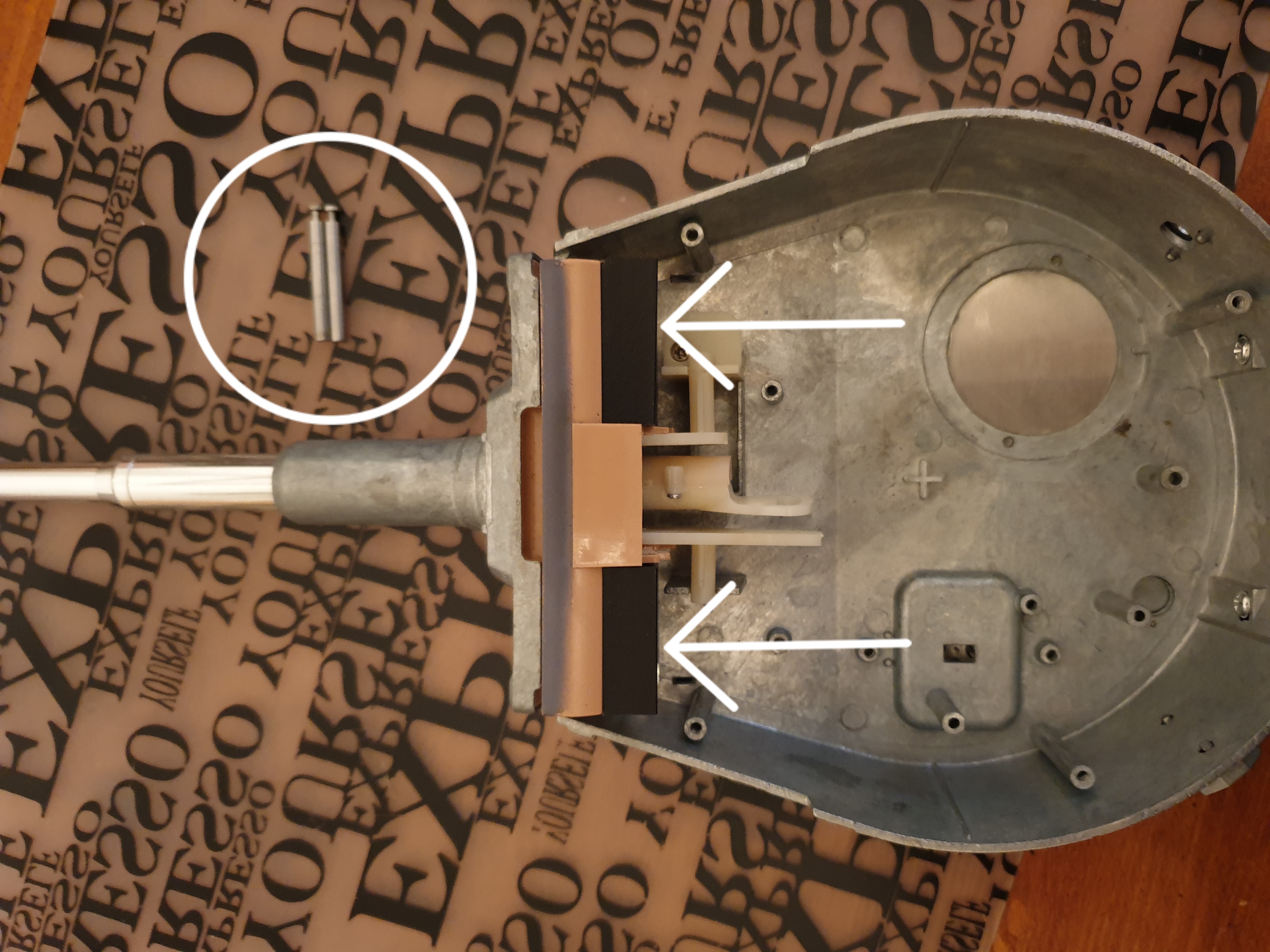 Hätte es sonst so gemacht das ich die kanone in den alten drehpunkt einlege ist noch vorhanden und die zwei Löcher dann bohre anschließend den Alten drehpunkt entfernen.