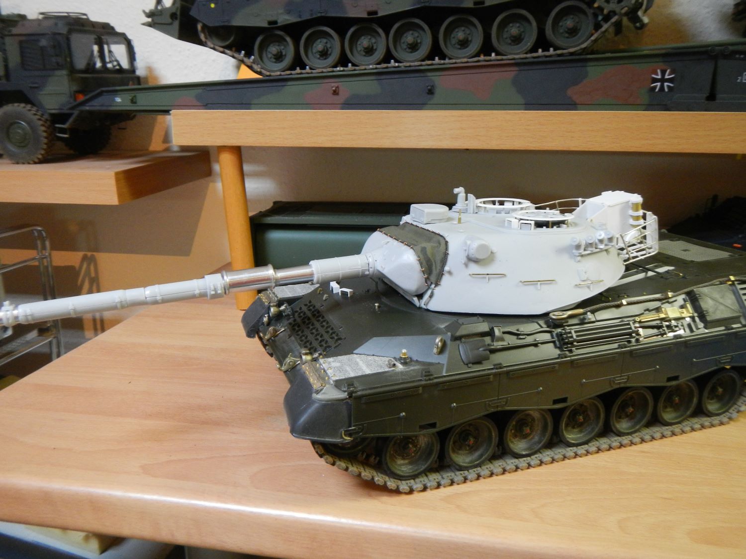 Sehr gut der Turmdrehantrieb aber nicht neu. Schade, ich dachte ich seh mal einen neuen Turm Leo1 Guß