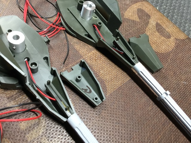 Zur Stabilisierung der Flakrohre habe ich die originalen Flakrohre mir zu nutzen gemacht und die Aufnahmen angeschnitten und angepasst. Die Rohre sitzen schon ohne Kleber fest und auch gerade. Auch habe ich gleich 3 mm LED in Orange eingesetzt.