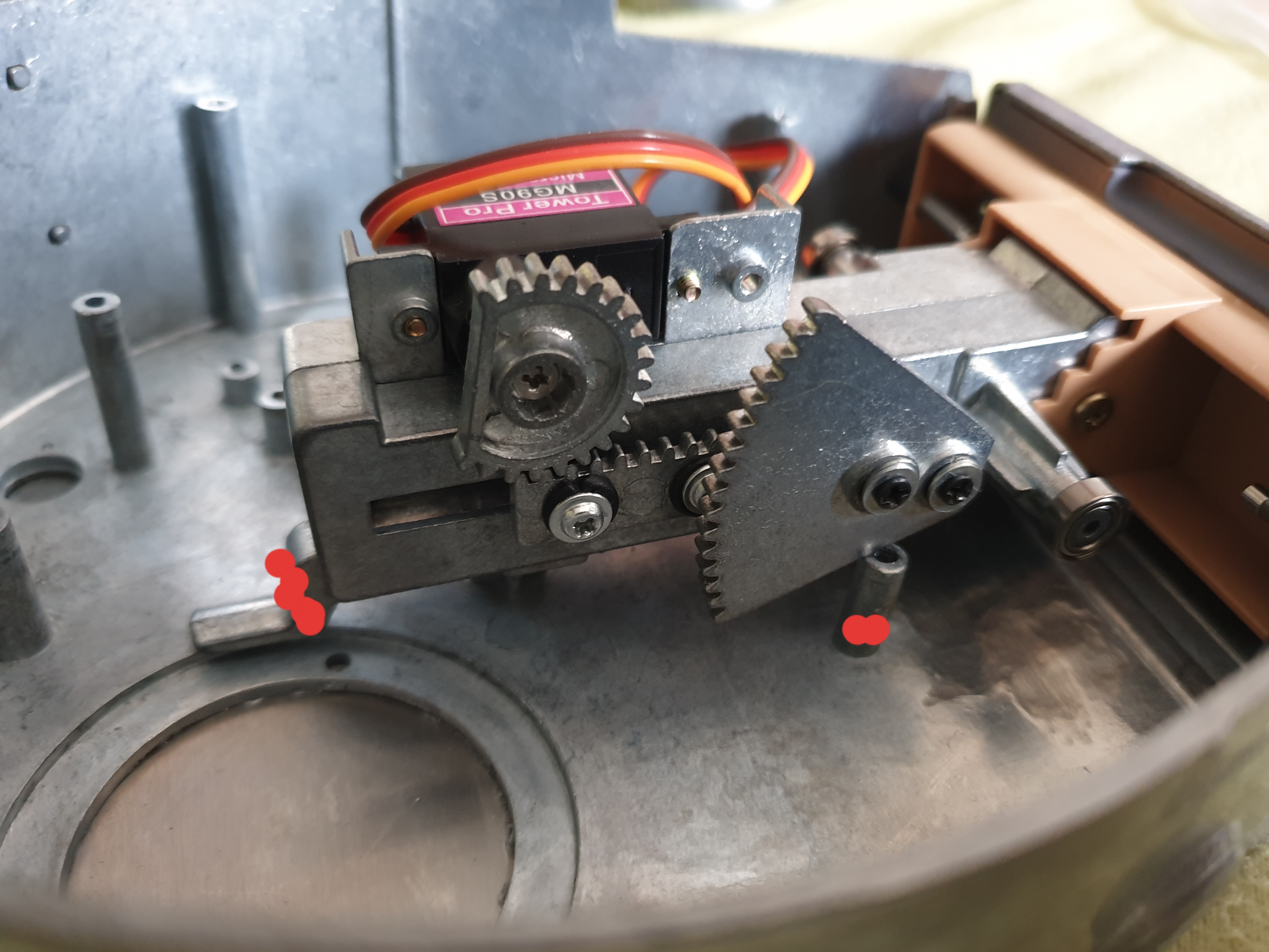 Das Elevationsservo wird auf dem Turmboden verschraubt. -- Grüße