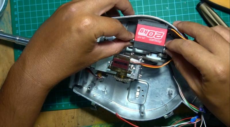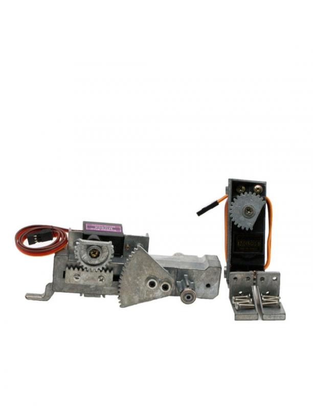 Bei den Video baut er den Servo für's heben und senken so ein das, das Zahnrad rechts sitzt also Hinten zur Nahverteildigungsluke hin.