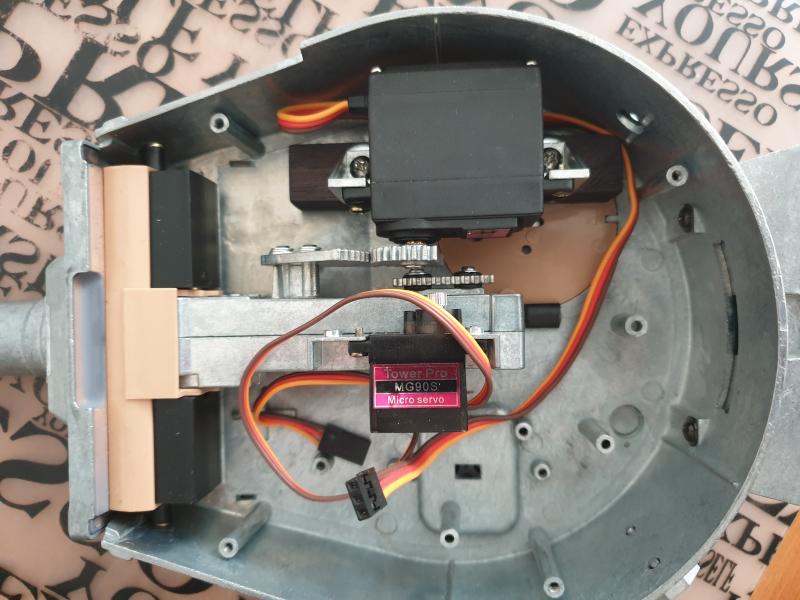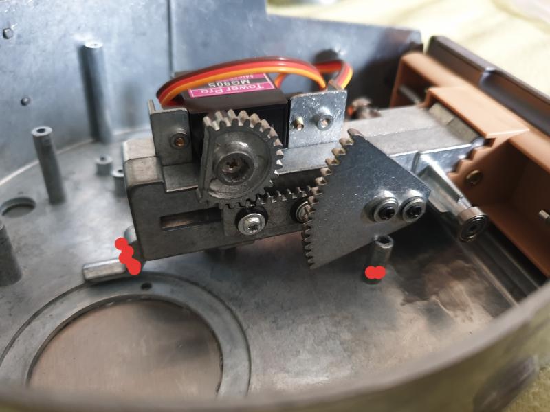 Kann ich bei mir jedoch nicht so einbauen, ich müsste den Servo für's heben und senken so einbauen das, das Zahnrad links sitzt Richtung Kanonenblende.