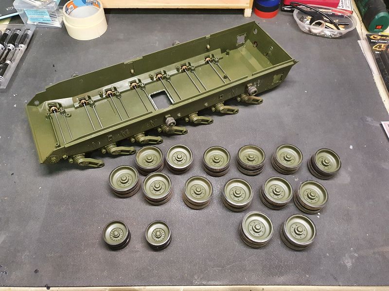 da ich ja aus dem Umbau vom österreich Leopard 2 A4 noch die Wanne und die Laufrollen übrig habe ... (wurde ja durch die Metallversionen ersetzt) ... habe ich mir gedacht - da muß man doch was vernüftiges drauß machen:p
