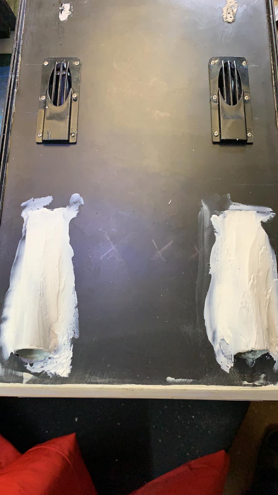 und verkleben - die weiße Masse ist kein Silikon, sondern Pattex Montagekleber extra stark