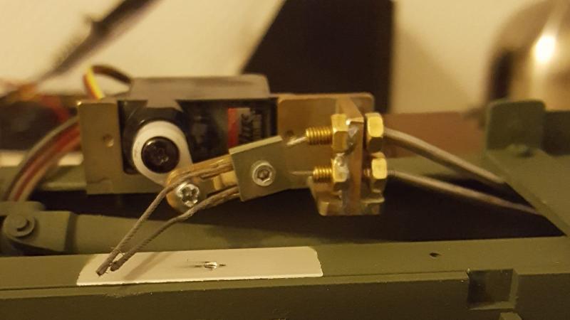 Beachte auch den Hebel , der über einen Rollenhebel am Servo betätigt wird