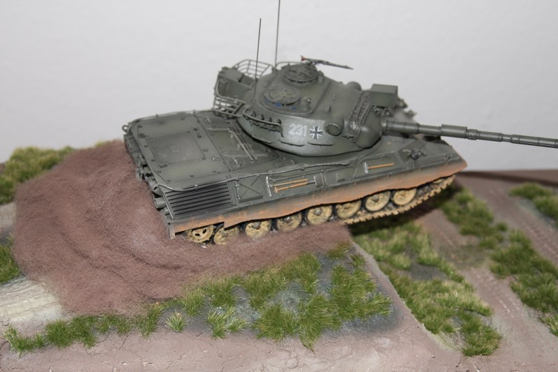 ich wollte euch mal kurz meine neueste Arbeit zeigen: Ein Leopard 1A2 im Maßstab 1:35 im Diorama.