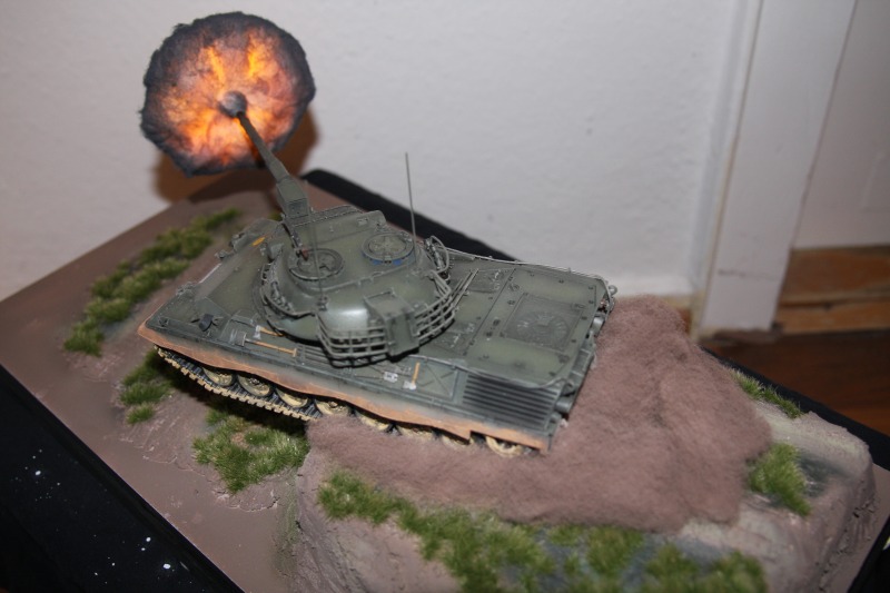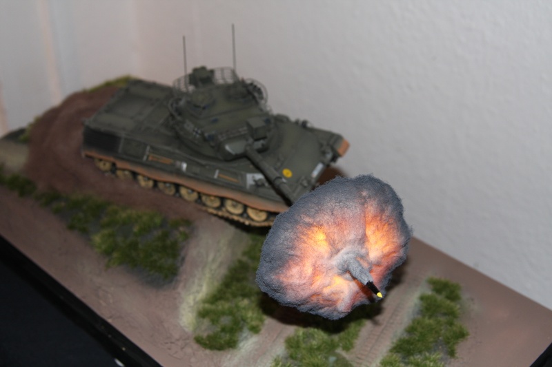 Das Ganze war für mich als Mischung aus Geburtstagsgeschenk und Versuchsmodell gedacht. Ich hatte auf Youtube ein Video von einem Merkava-Diorama gesehen, der im Sprung feuert, und war schwer begeistert. Kurze Zeit später zeigte der Erbauer ein Making-Off, wo ich mir dachte \\\'Ach, so hat der das gemacht. Ist doch ganz einfach, hab ich alles da...\\\'