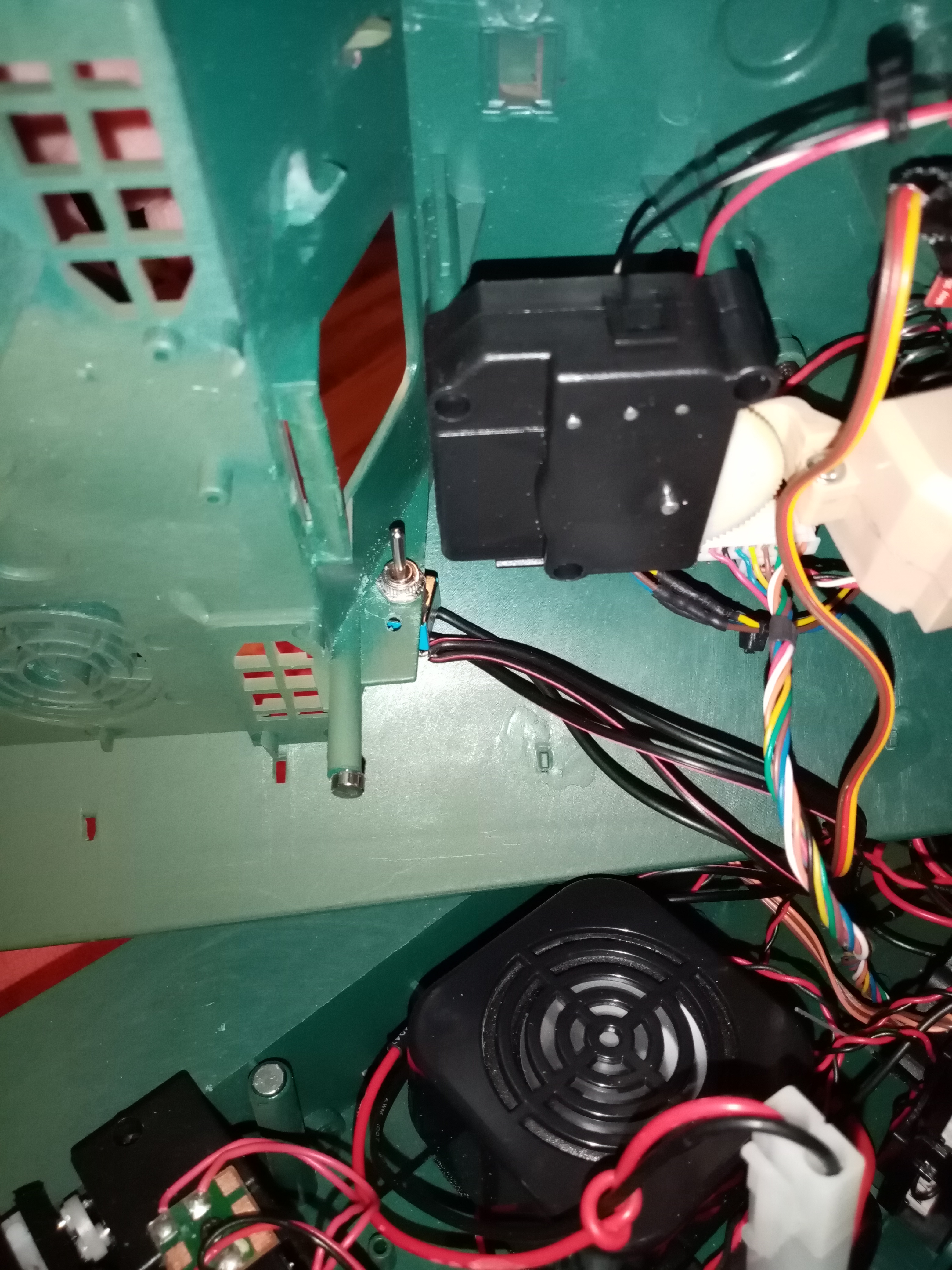 Hab hier noch zwei Bilder wo ich den Schalter angebracht habe. Das erste von außen. Der jagdpanther hat dort ja eine Klappe zum öffnen.Im inneren liegt der Kippschalter direkt links. Kann man gut mit dem Finger erreichen um ihn zu betätigen. Das zweite ist von innen, dort ist die Position des Schalters zu sehen. Wenn Interesse besteht an den anderen Änderungen die ich vorgenommen habe einfach mal melden.