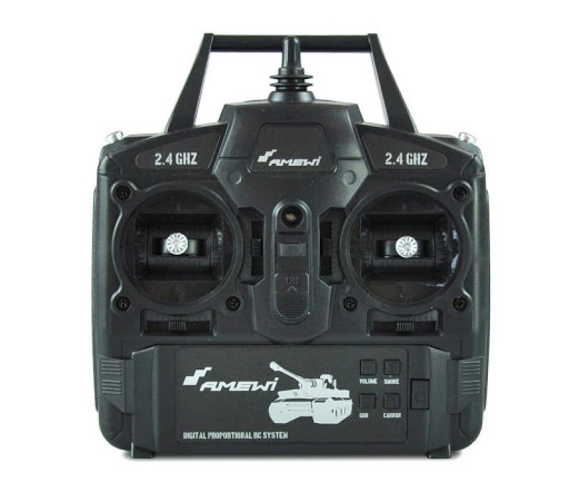Da mir die neueren Heng Long bzw. Amewi-FBs eigentlich sehr zusagen; die Schalter für Schuß, MG, Rauch und Volume sind schön dicht beieinander, und mehr brauche ich ja auch nicht; finde ich die mir bekannten 6-Kanal-FBs dann doch recht teuer für den gebotenen Mehrwert.
