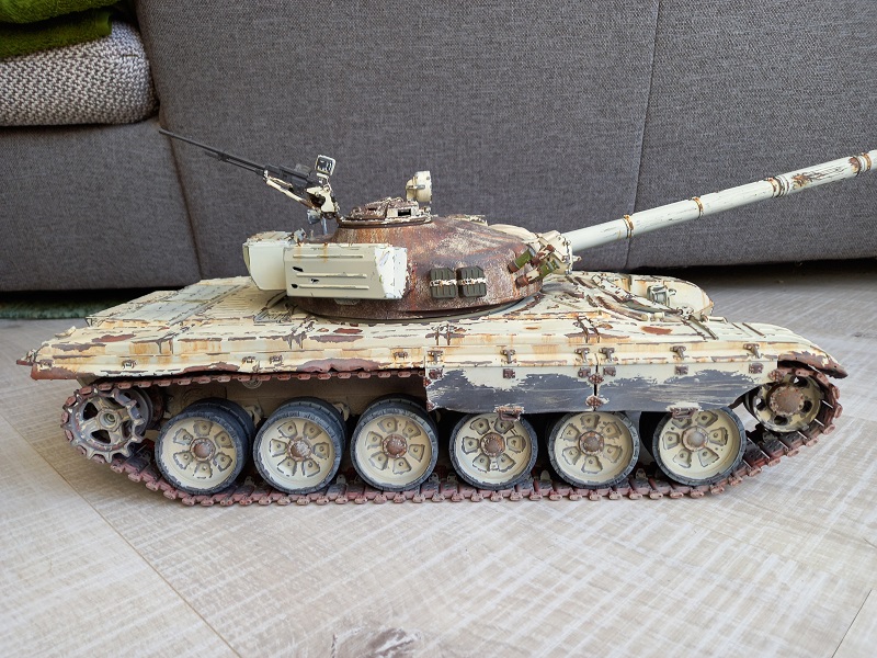 Man sieht hier sehr schön, dass der Gussturm und die gewalzte Zusatzplatte der oberen Front deutlich mehr mit der Witterung zu kämpfen hat. Wirkt im ersten Moment etwas verwirrend, ist aber den unterschiedlichen Materialeien geschuldet und realistisch.