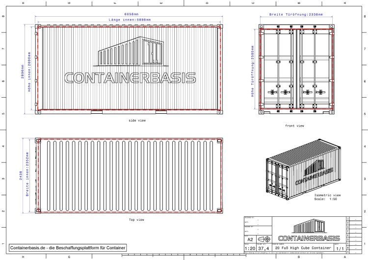 Der MuConPers hat ne handelsübliche 20 Fuß Länge, die genaue Höhe kann man aus den Bildern ja rausmessen.