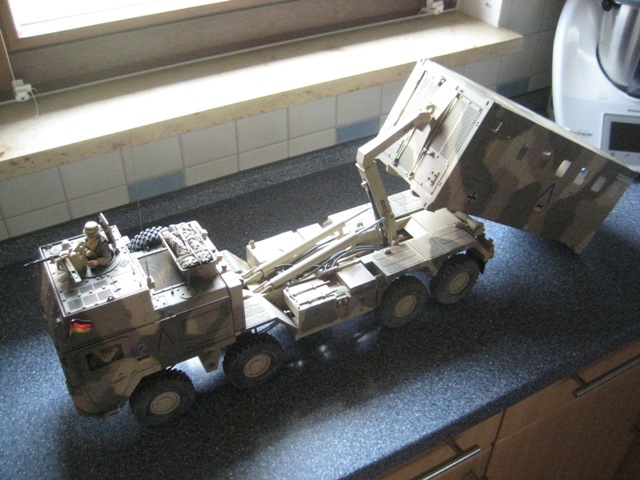 der Personencontainer soll auch noch erstellt werden. Hast ja wieder ganz schön vorgelegt. Ich will aber noch die Aufnahme für Standartcontainer (X-Rahmen) bauen. dafür fehlen mir Detailbilder und Maße. Den Tag der offenen Tür bei der Bundeswehr wird es ja in absehbarer Zeit nicht geben. Aufgeschoben ist nicht aufgehoben. Baue erst mal noch einige Wechselpritschen mit unterschiedlichem Ladegut.