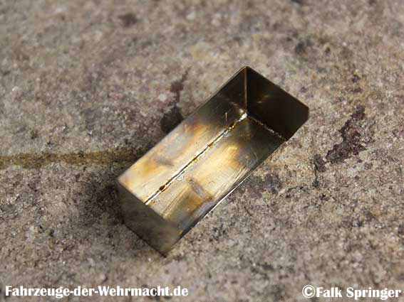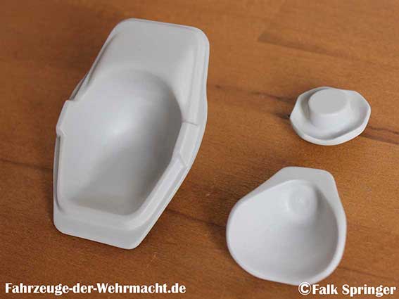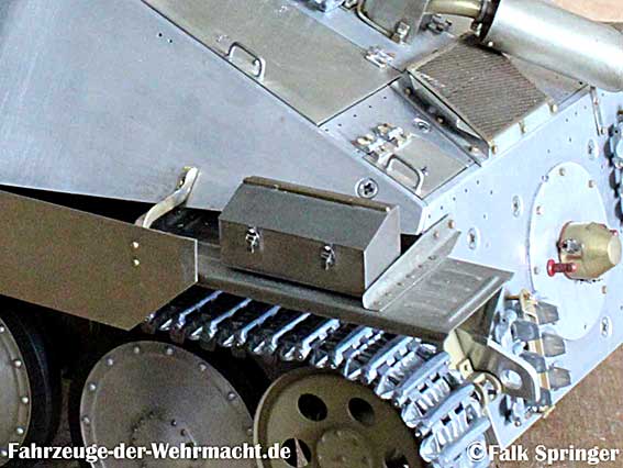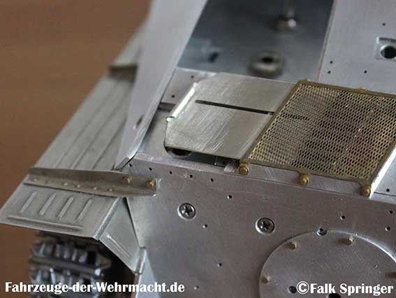 Ein Teil, woran ich beispielhaft noch etwas zur Modellbautechnologie erklären kann, ist die Werkzeugkiste auf dem Kettenblech: