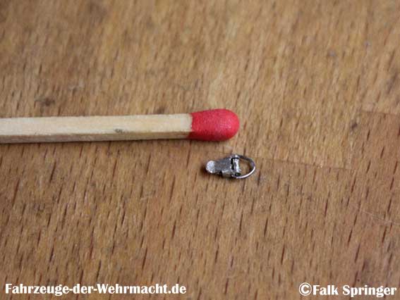 Auch nicht zu den Verschlüssen, die zwar kompliziert aussehen, aber keinerlei Besonderheit aufweisen, außer daß es sehr eng zugeht und man etwas Fingerspitzengefühl braucht. Sie sind sehr klein, aber dennoch für den Maßstab zu groß. Dafür funktional und somit zufriedenstellend.