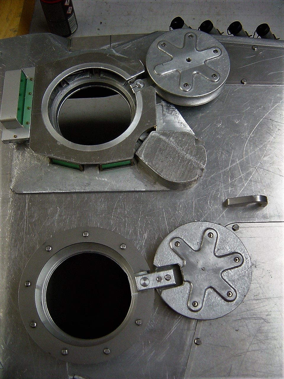 heute habe ich die ladeschützenluke in angriff genommen. da robert mich schon vorgewarnt hatte, was für eine fuddelei das wird, wenn die öffnung der klappe scale sein soll, habe ich mich dagegen entschieden und die gleiche öffnungsweise wie die kommandantenluke umgesetzt. ist ein kompromiss mit dem ich leben kann.