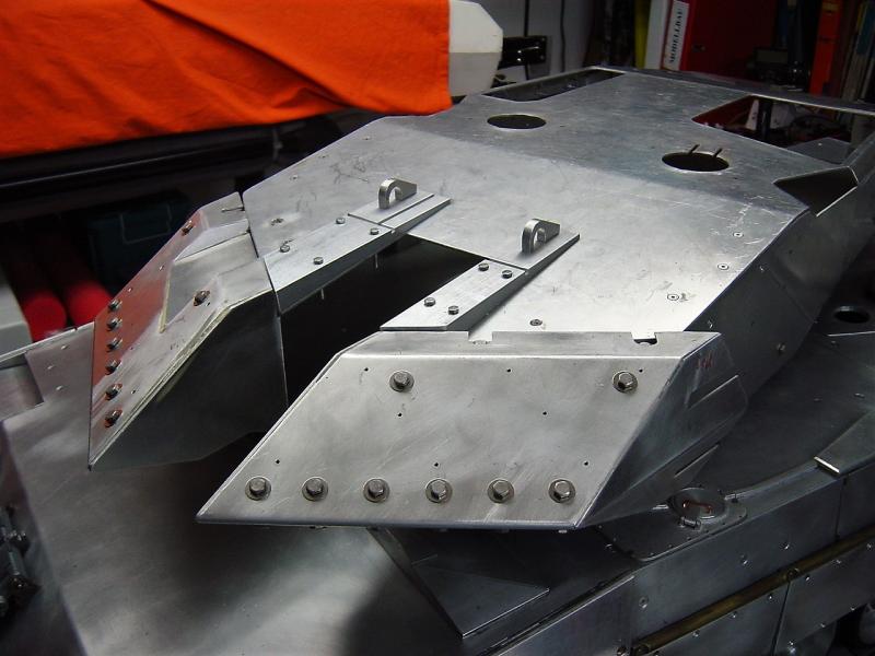 Vorne auf der Zusatzpanzerung gibt es KEINE zusätzliche "Platte", sondern das ist nur ein "Rahmen", der vorne und seitlich auf der Zusatzpanzerung angeschweißt ist. Der Rahmen hat bei mir eine Breite von 2mm und eine Höhe von 4mm.