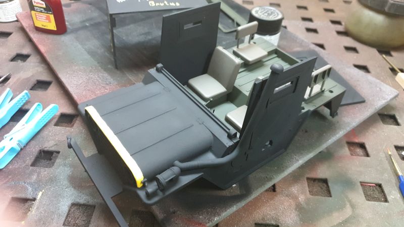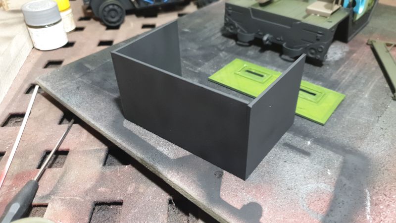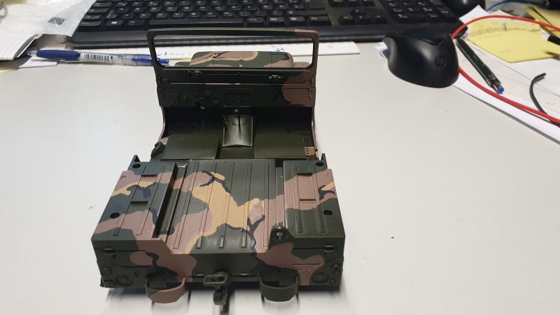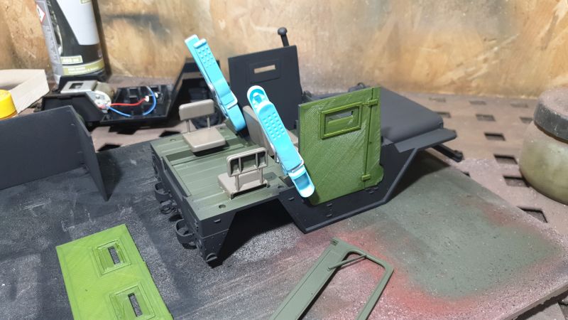 Die Panzerplatten habe ich zum Teil gefräst und gedruckt. typisch ist auch die Schwarze lackierung mit gelbem Steifen an der Motorhaube.