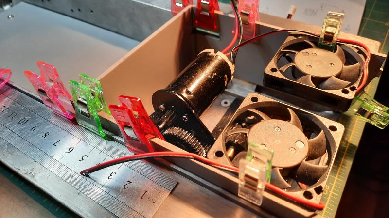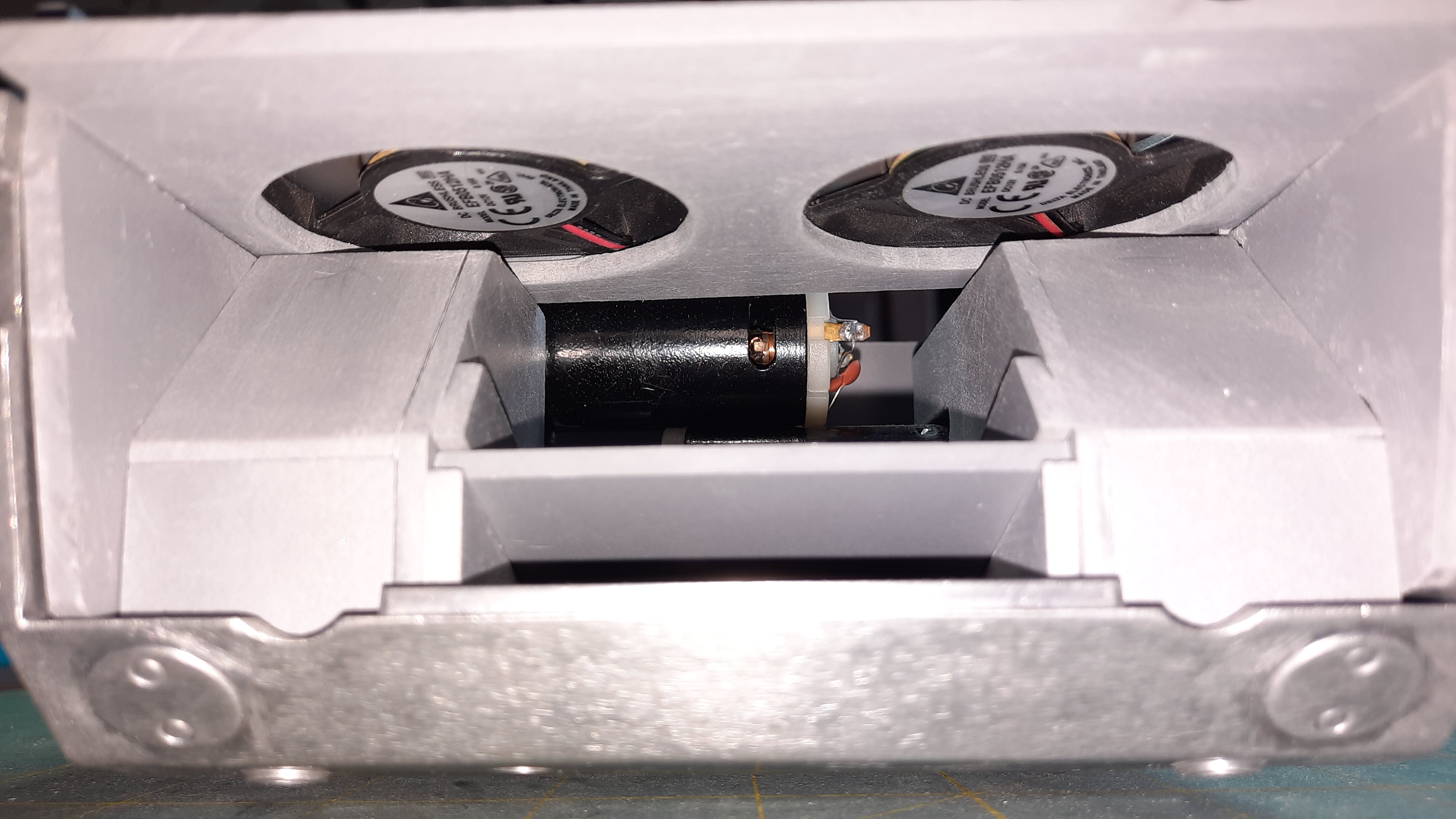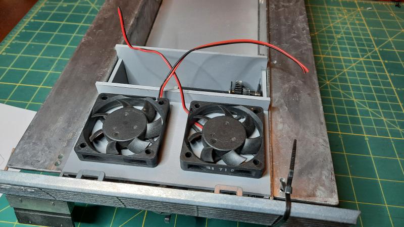 .... und noch ein Foto : Kühlung ist eigentlich nicht notwendig, aber wenn ich mir die Mühe mache die Ansaugung der Kühlluft, mit viel Mühe zu öffnen, dann muss sich darunter auch was drehen ! Der Sound der Lüfter ist auch Vorbildgerecht - Fahrschalter ein. -- Gerne der Zeiten denk ich, da alle Glieder gelenkig - bis auf eins. Doch die Zeiten sind vorüber, steif geworden sind alle Glieder - bis auf eins. J.W. von Goethe