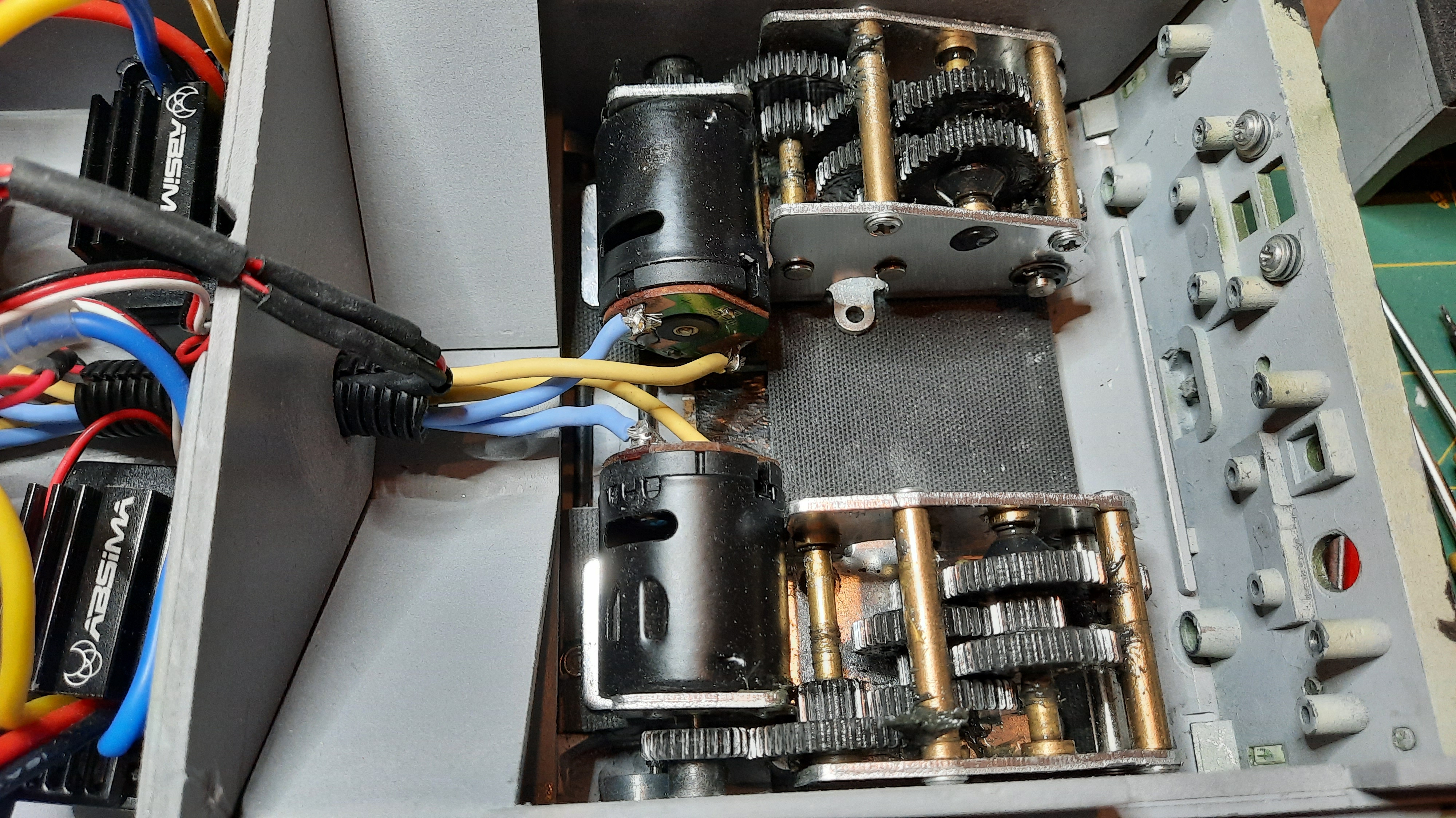 zum anderen müssen die Motoren durch das große Ritzel mehr Moment als Drehzahl haben.