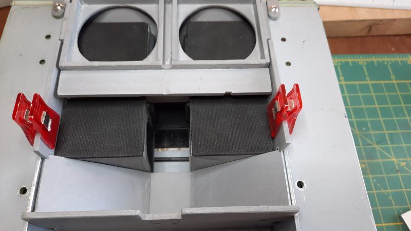 Gebaut aus Hartschaumplatte mit Moosgummi- und Bitumen - Matte, recht effektiv, die Enden haben sogar eine Abdichtung durch 3mm Gummischnur. Ich versuche auch die Komponenten gegen Schmutz und Staub abzudichten.