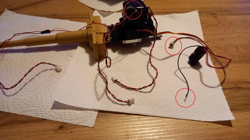 also ich bin zumindest etwas weiter. Die Schusseinheit funktioniert jetzt. Ich muss wie bei der meiner anderen Schusseinheit vom Königstiger noch einen Draht an das Gehäuse des Motors löten.