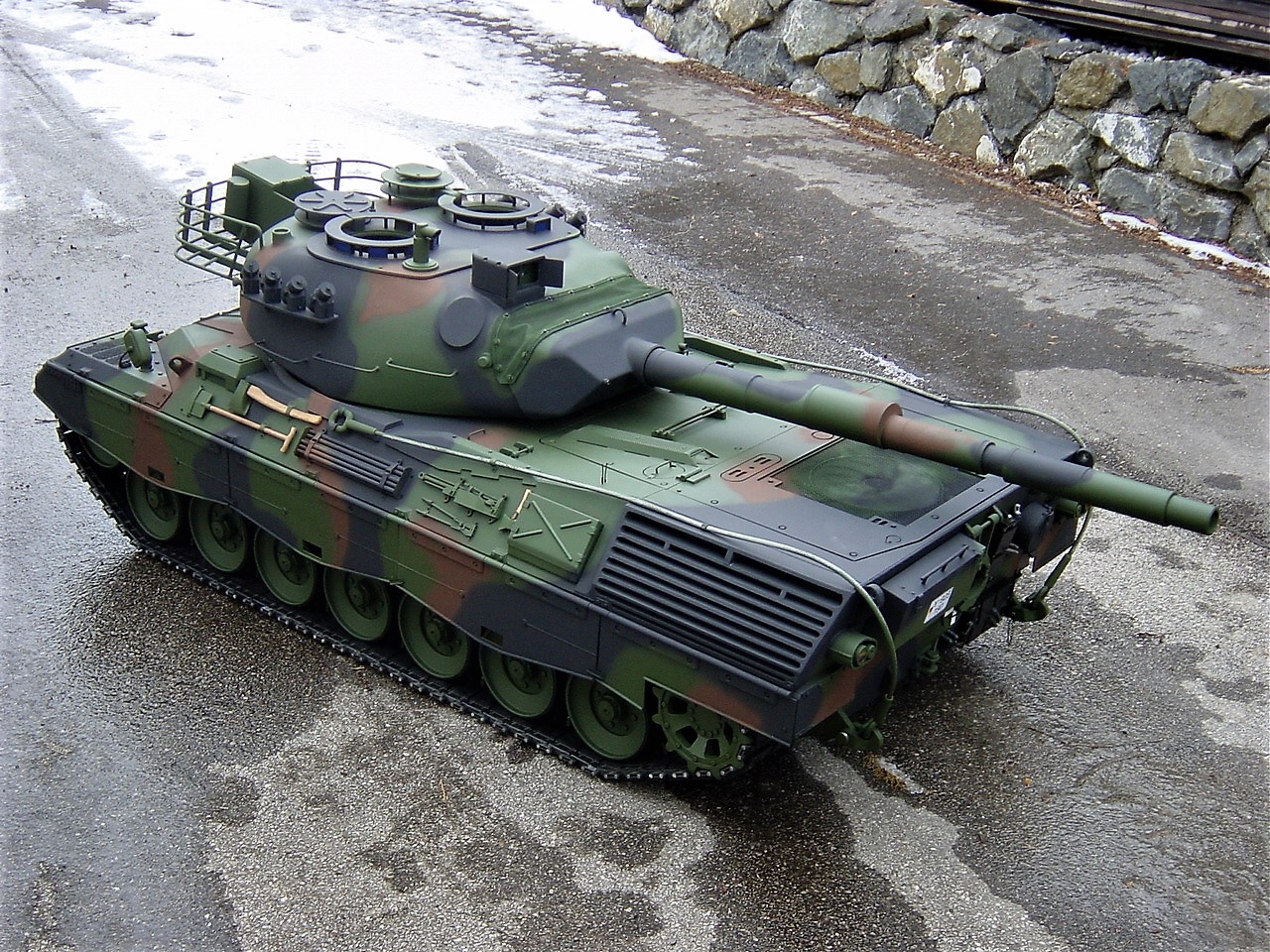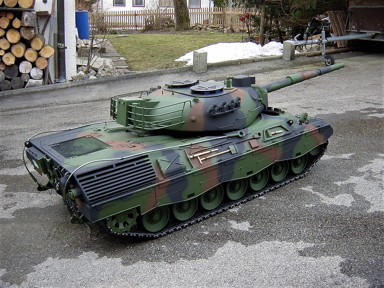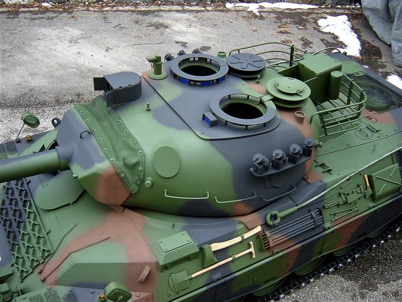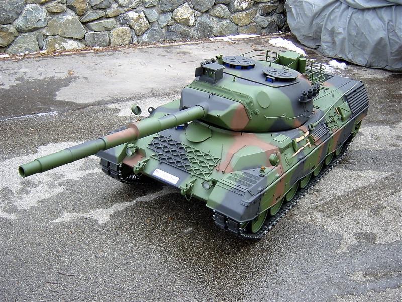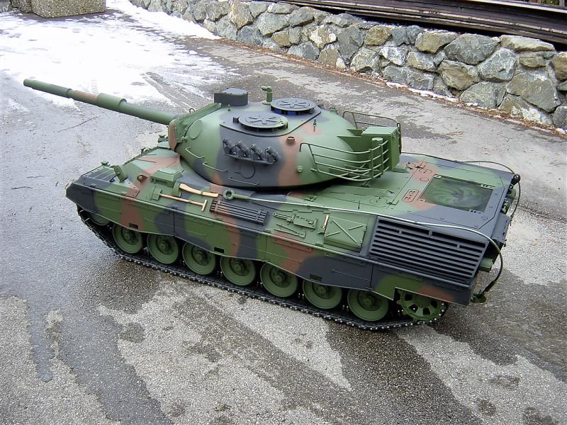 seit ein paar tagen, bin ich im besitz eines neuen leo's 1 A5 ohne zusatz panzerung, im maßstab 1:4, leider paßt er nirgenswo durch die tür (habe mich glatt vermessen) deswegen werde ich ihn wohl wieder verkaufen müssen.