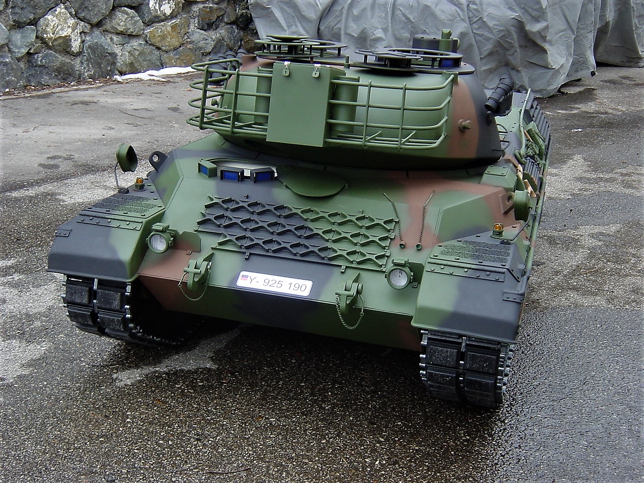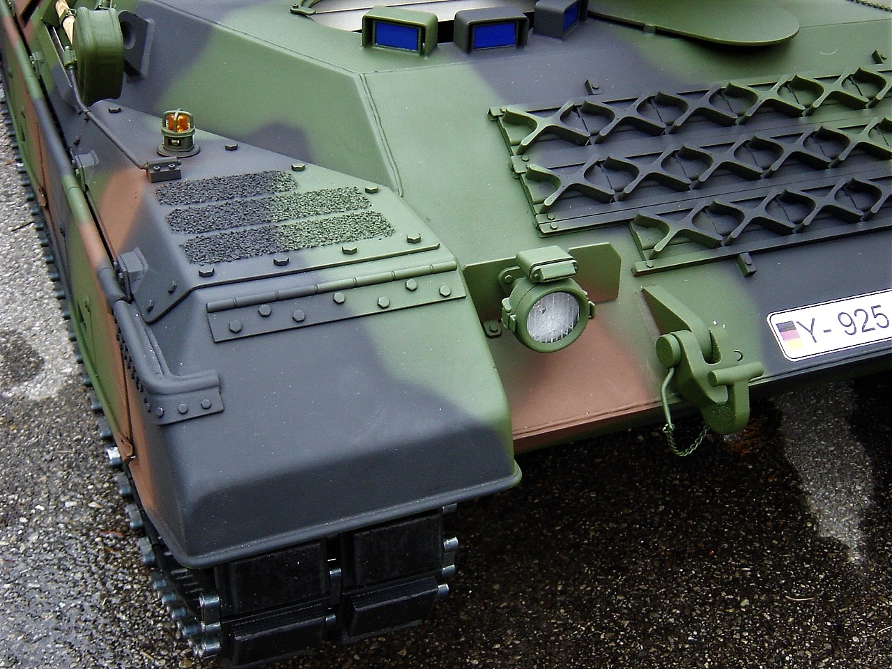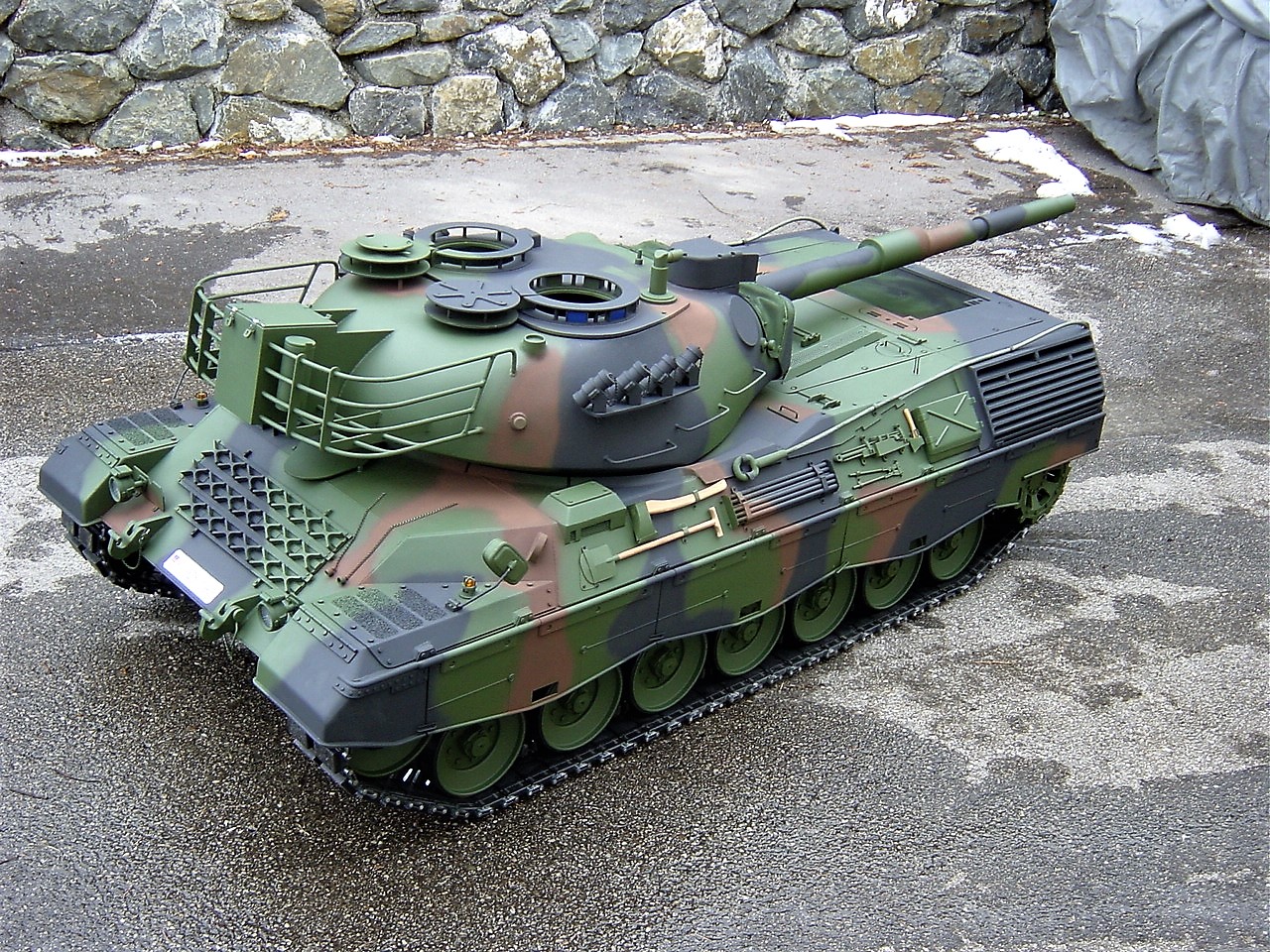seit ein paar tagen, bin ich im besitz eines neuen leo's 1 A5 ohne zusatz panzerung, im maßstab 1:4, leider paßt er nirgenswo durch die tür (habe mich glatt vermessen) deswegen werde ich ihn wohl wieder verkaufen müssen.