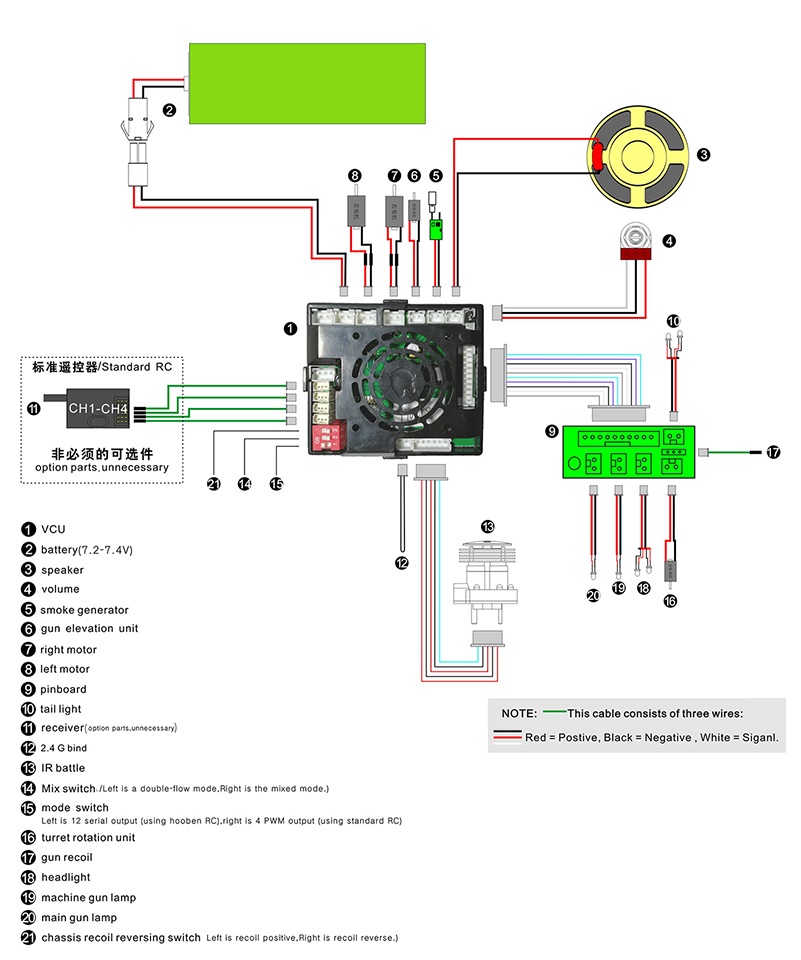 Man kann an dieser Elektronik auch einen Empfänger anschließen und so mit dem eigenen Sender steuern.