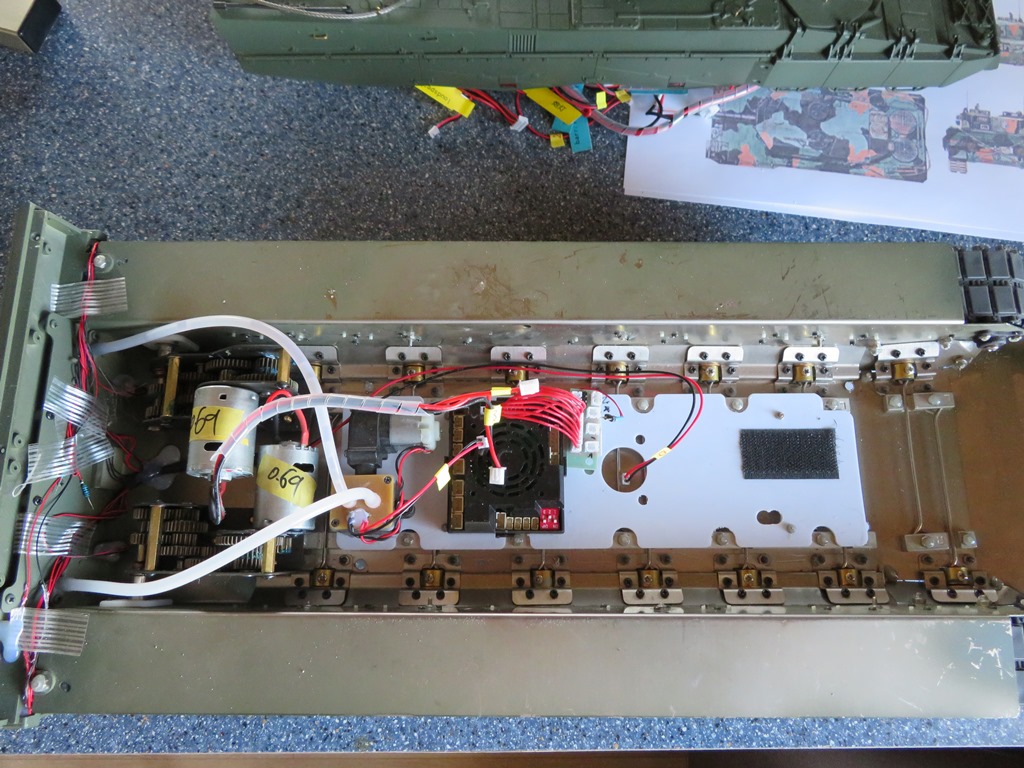 Hier mal das erste Bild, nach der Reparatur der Kettenschürze, Positionierung Kanonen Abschußgerät und Werkzeuge.