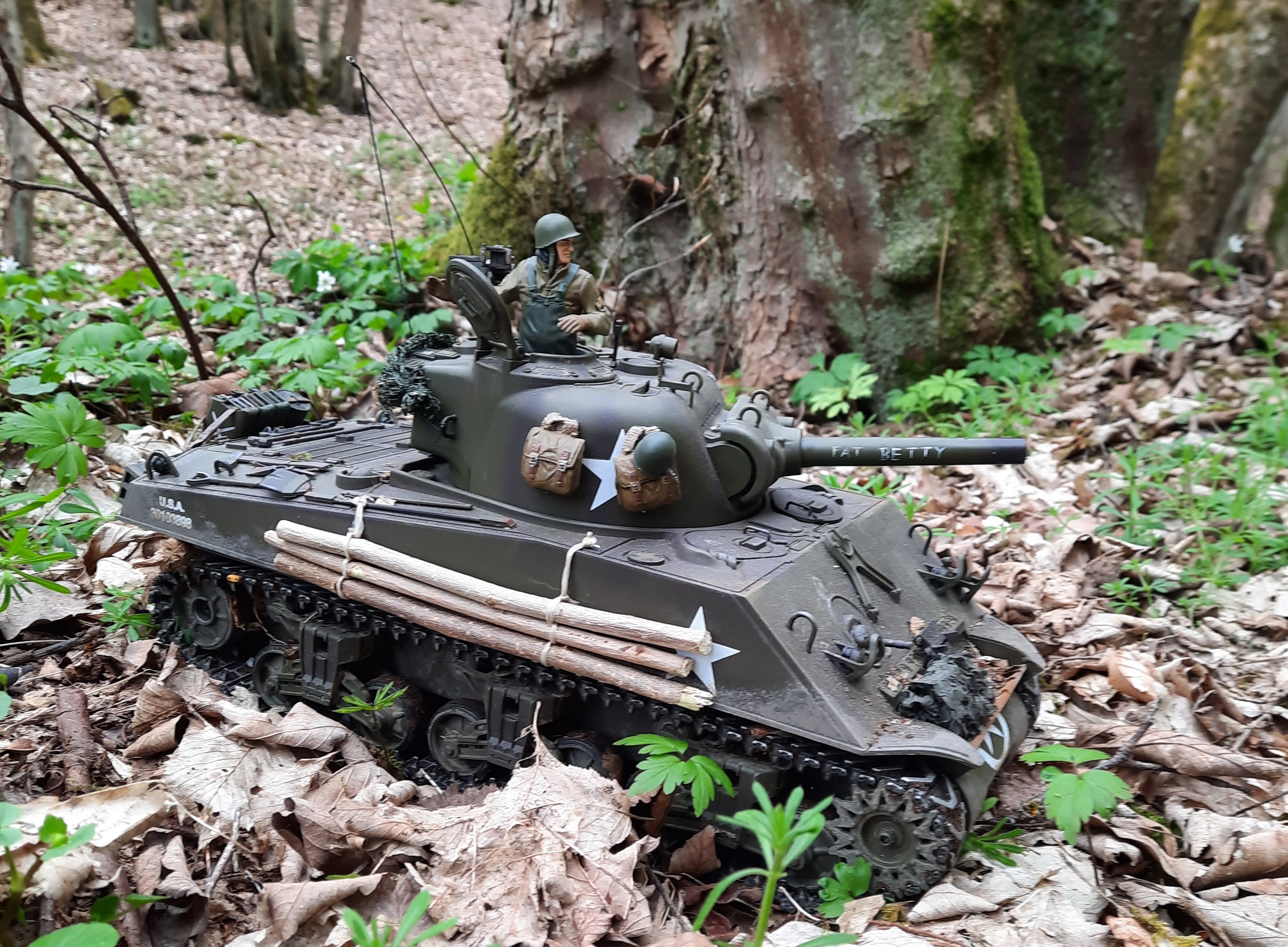 mein Name ist Siggi, bin 45 Jahre alt und fing im Februar, nach fast 25 Jahren, wieder mit dem Thema Modellbau an. Ausbildung zum Kfz-Elektriker, 4 Jahre Bundeswehr und dann 20 Jahre Berufskraftfahrer im Fernverkehr. Da blieb nicht wirklich Zeit für dieses Hobby. Durch Corona wurde ich arbeitslos und rutschte mit etwas Glück in einen Metallbaubetrieb rein. Geregelte Arbeitszeiten und viel mehr Freizeit brachten mich dann dazu, wieder mit Modellbau anzufangen. Daraufhin habe ich mir einen HengLong M4A3 Sherman (Amewi Edition), M1:16 zugelegt. Warum gerade einen Sherman? Als ich in dem kleinen Laden in Haibach stand und mir die ganzen Modelle mal Live und in Farbe (nicht nur Bildchen im Internet) angesehen habe, kamen 3 Kunden rein. Die kannten nur Tiger, Königstiger und wieder Tiger, Tiger, Tiger........ Jetzt stand im Regal vor mir ein Tiger und daneben ein Sherman. Nach einiger Zeit der Betrachtung beider Modelle dachte ich mir, ich gebe dem Sherman eine Chance. Ich fand ihn irgendwie knuffig . Außerdem gehört dieser Kollege genauso zum Zeitgeschehen wie ein Tiger und ist somit nicht weniger wichtig oder wegzudenken. Mir macht es jedenfalls Spaß, mit dem Gerät durch den Vorgarten der Vermieterin zu fahren. Auch wenn sie neuerdings Panzersperren in Form von Stiefmütterchen in Doppelreihe gepflanzt hat und ich nun zickzack durch das Gelände fahren muss, was schon eine gerissene Kette zur Folge hatte.