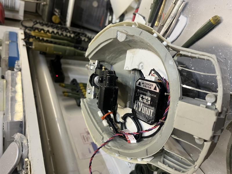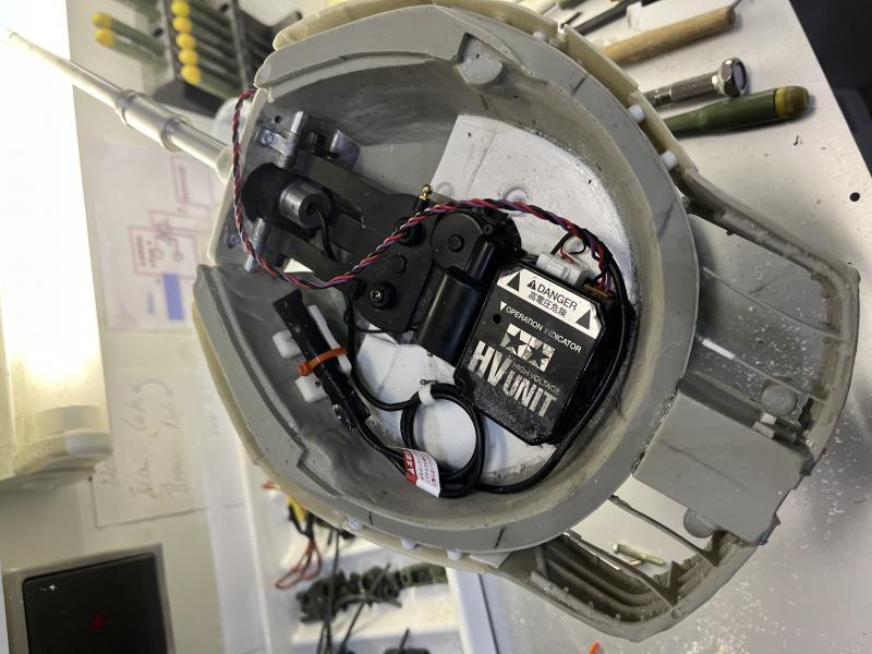 Jetzt die Höhe angepasst und das Blitzkabel verlegt , jedenfalls Millimeter Spiel, alles Mega knapp , aber der Turm ist die Herrausforderung, es gibt einfach nichts was man kaufen kann und einfach so reinpasst . Wenn die Turmunterseite draufkommt mit der Wölbung für den Fahrer, ist jeder Miillimeter im Inneren gefragt , aber nach einigen Versuchen passt es dann.