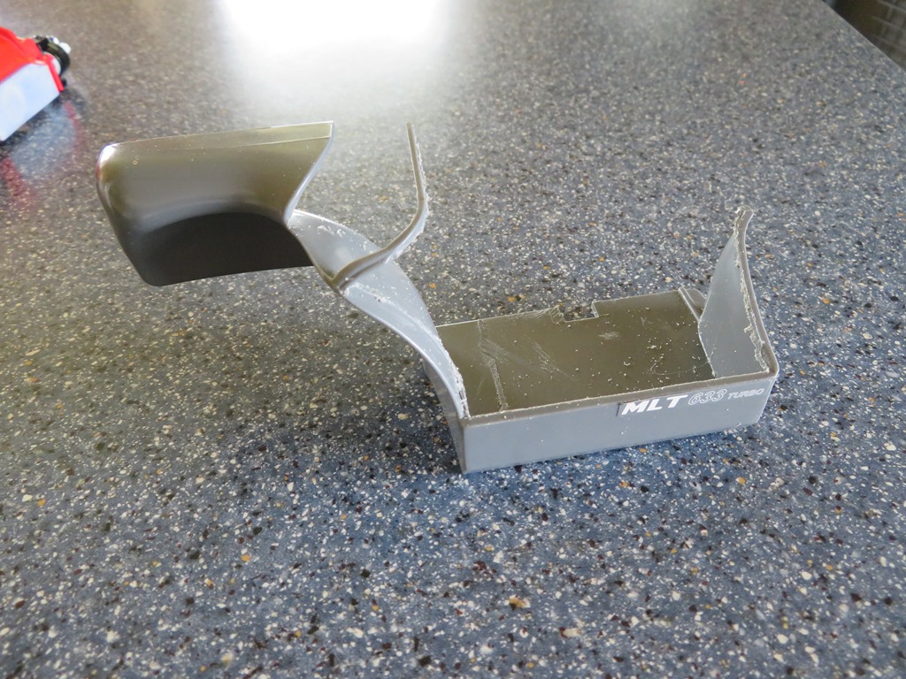Danach ging es an die vordere Abdeckung vom Fahrzeug, um das ausgesägte Loch zu stopfen.