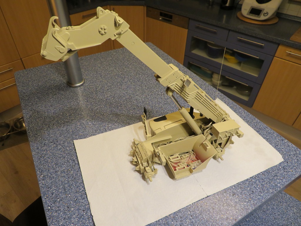 Kleine Anregung ... evtl. hast du ja auch schon dran gedacht - die angedeuteten Steuerleitungen links am Hubmast, abfeilen und durch Messingrohr ersetzen ... sieht bestimmt genial aus.