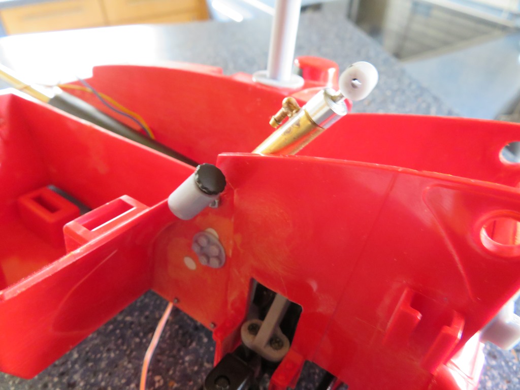 Der Zylinder eingefahren, hat ausreichend Platz, nachdem vorne etwas Material abgetragen wurde.