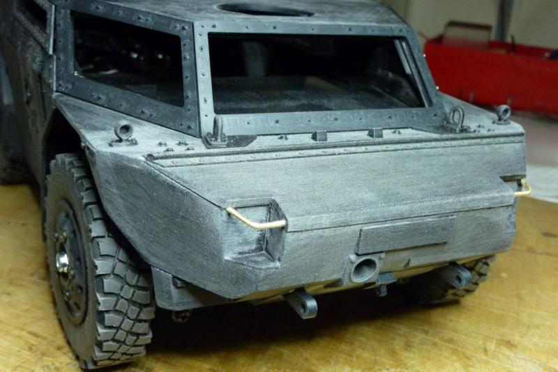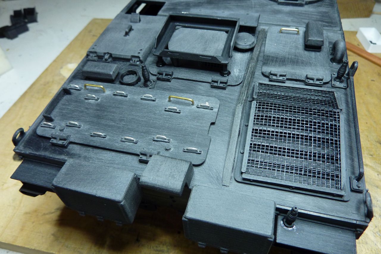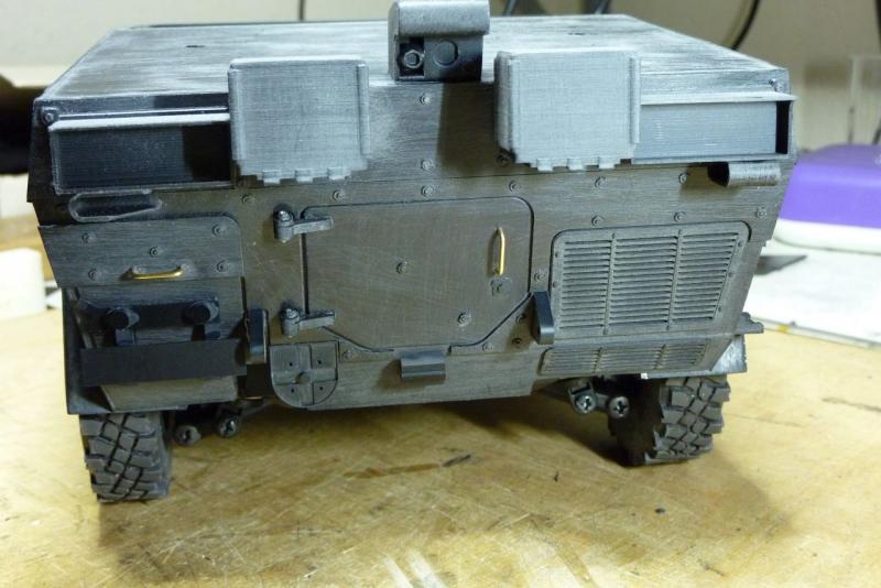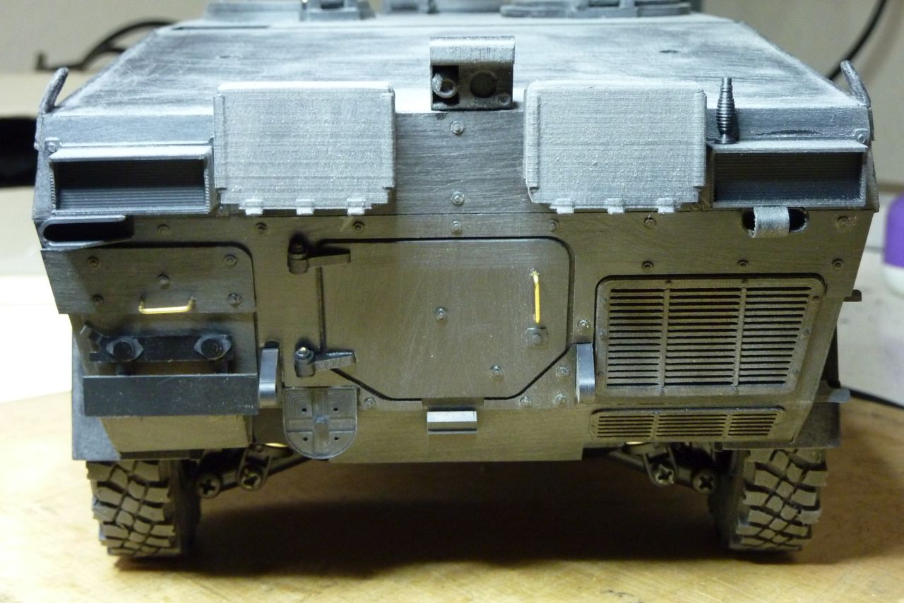 Da mir die Proportionen am Heck nicht so richtig gefielen , hab ich die Rückfahrkamera , Munitionskästen und Rückleuchten noch mal neu gemacht .