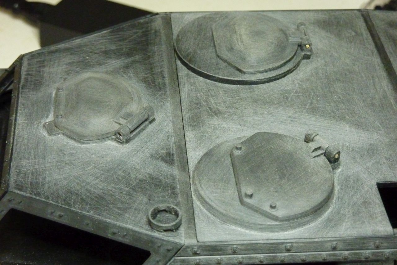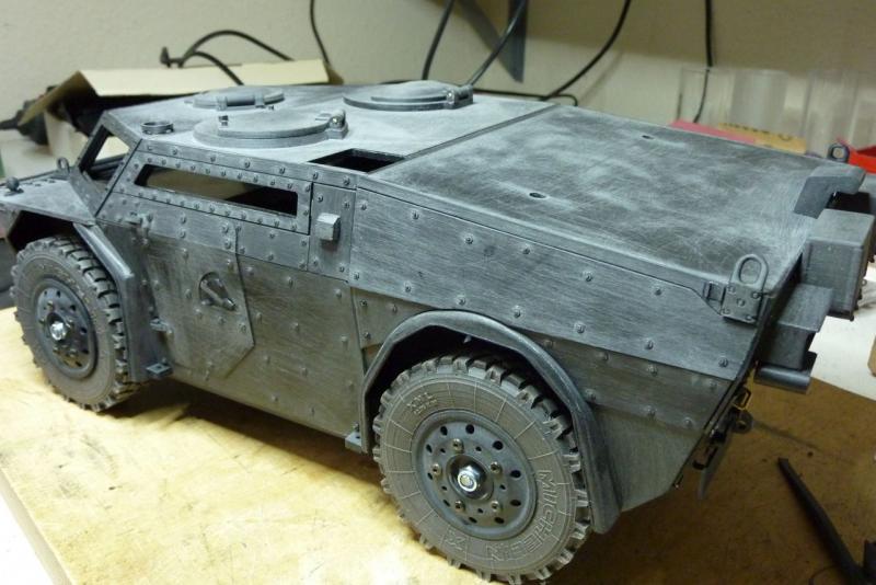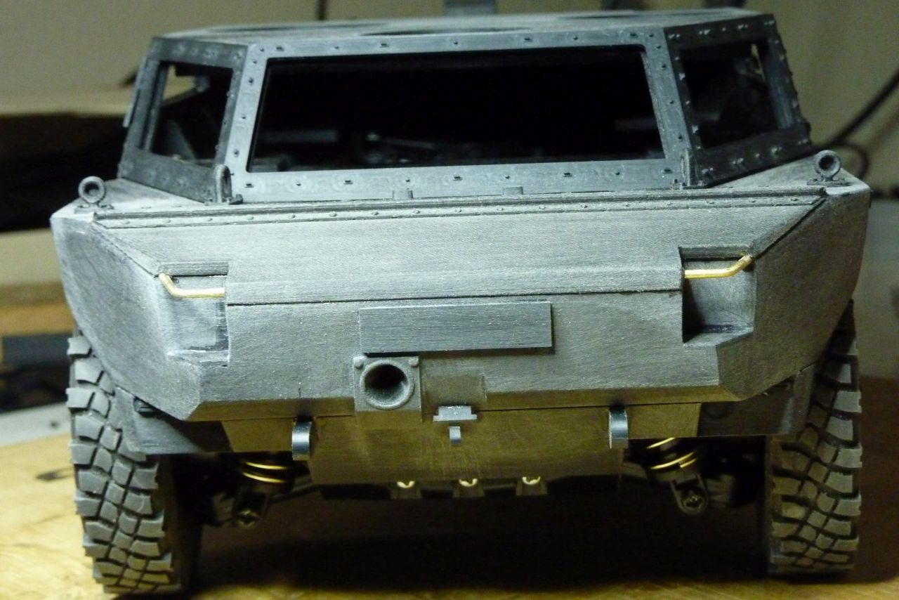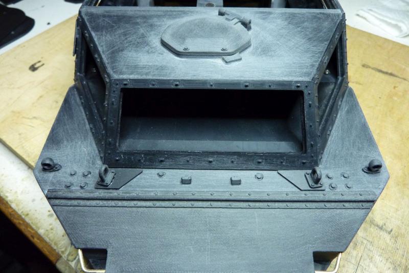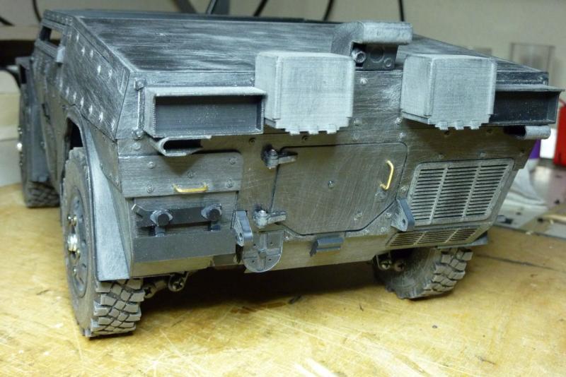 Da mir die Proportionen am Heck nicht so richtig gefielen , hab ich die Rückfahrkamera , Munitionskästen und Rückleuchten noch mal neu gemacht .