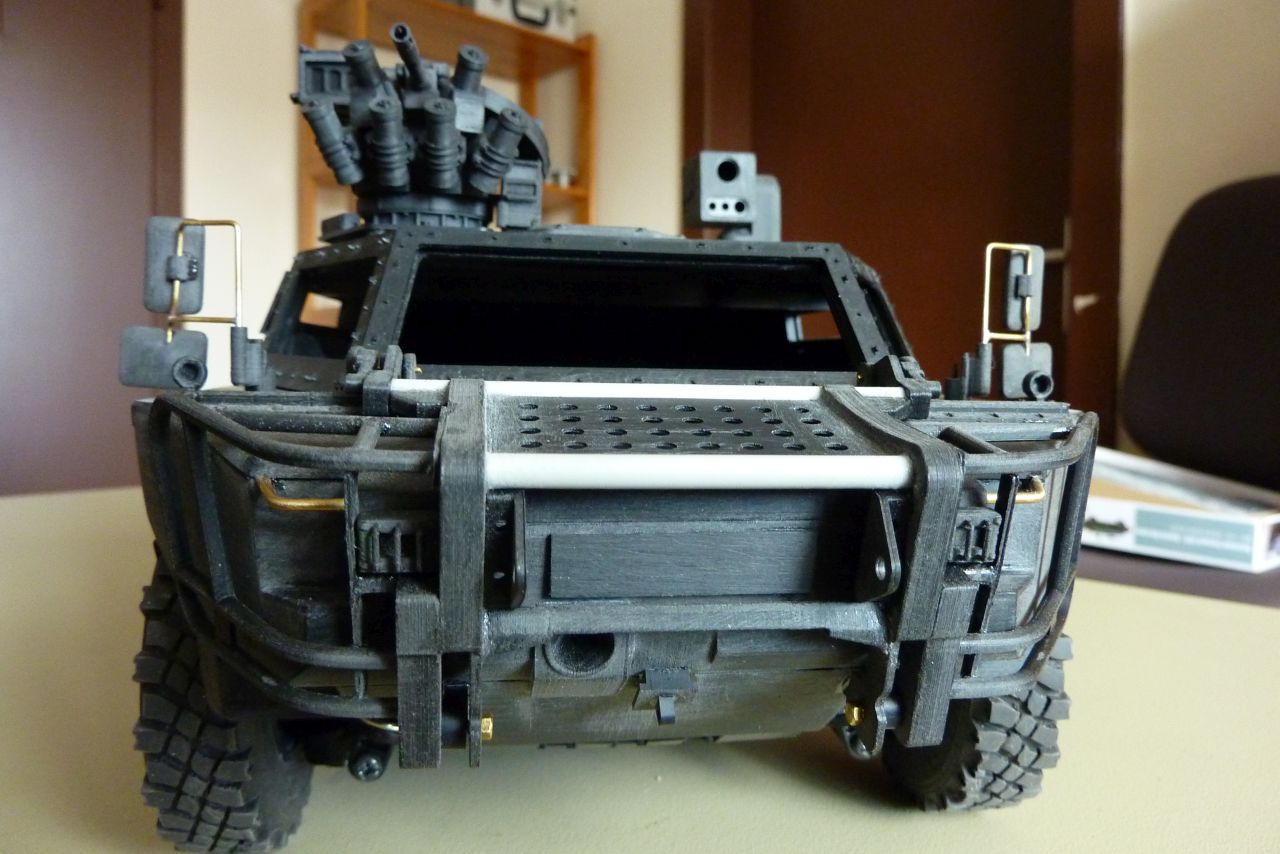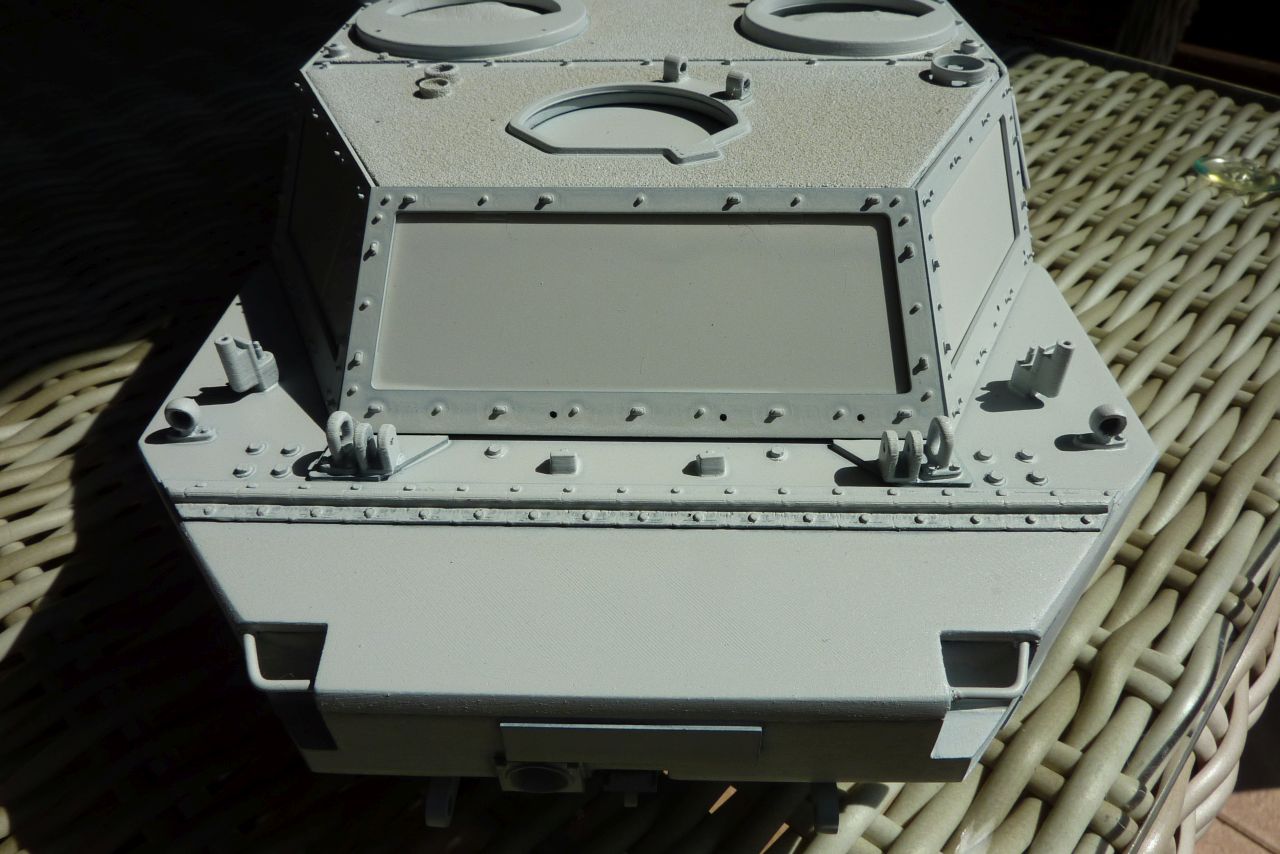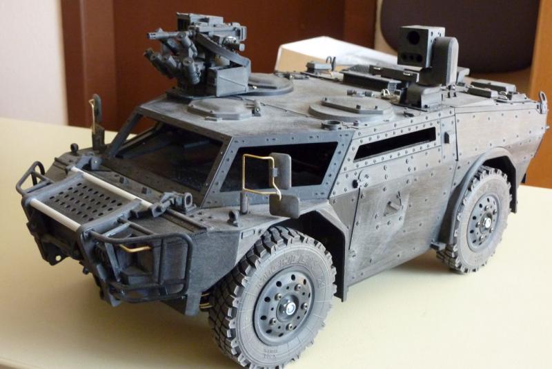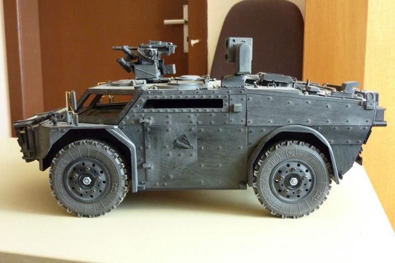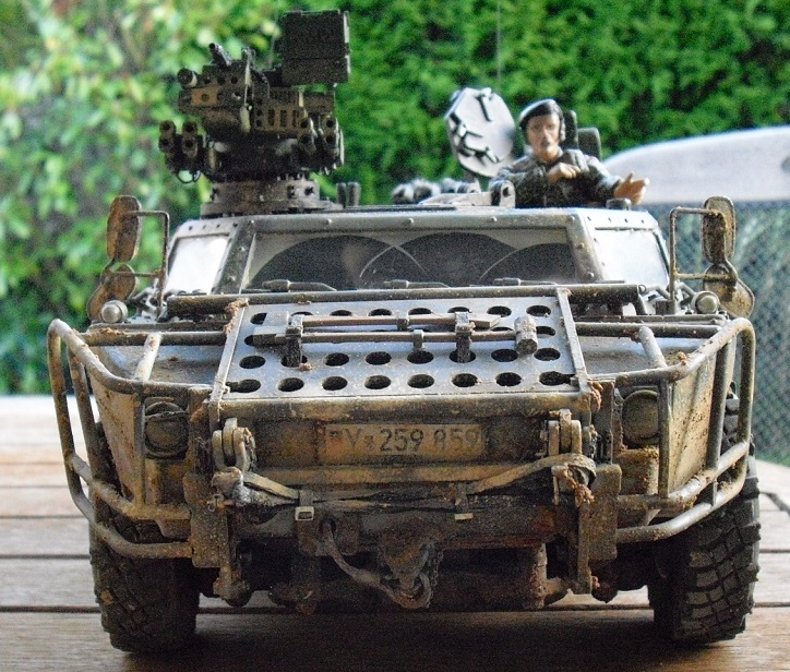 Der Fennek hat nun seine Grundierung bekommen und somit lassen die Details gut erkennen .