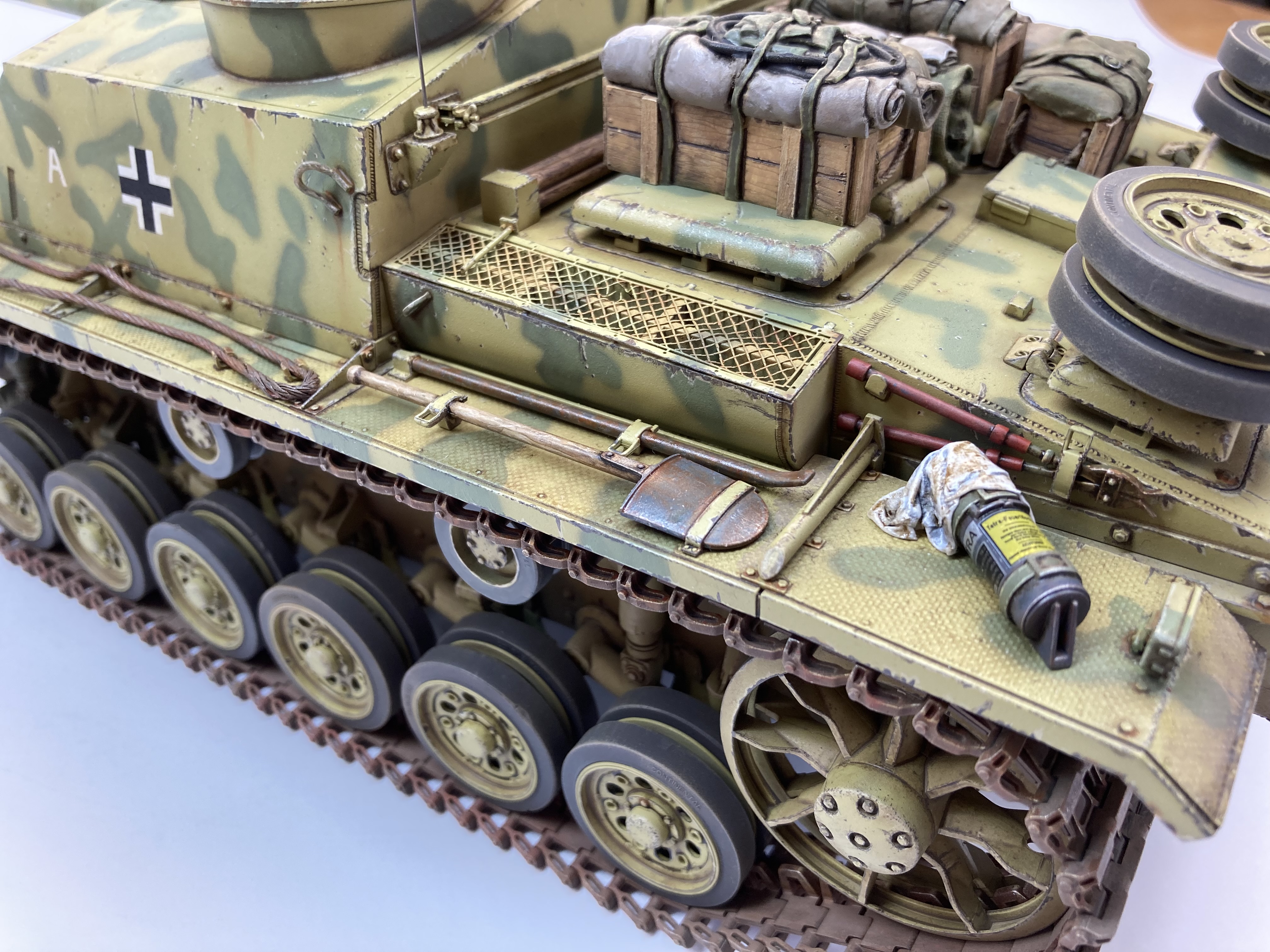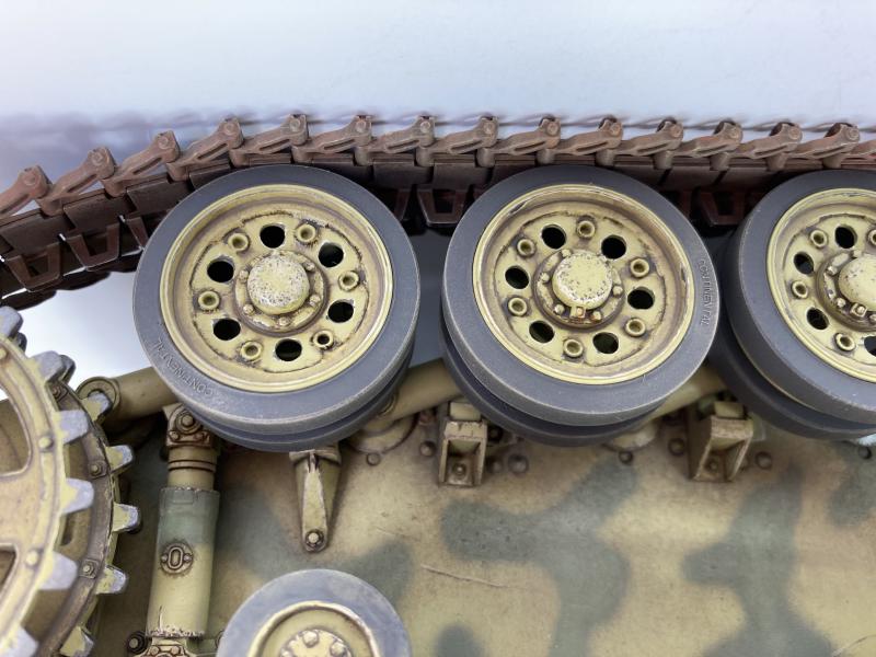 Der Bausatz ist wunderbar detailliert, die Plastik Einzelteile sind sehr stabil aber dennoch filigran, es ist ein Alu Geschützrohr, Kupfer Abschleppseile sowie einige Ätzteile im Bausatz dabei. Die Kette besteht aus Einzelgliedern.