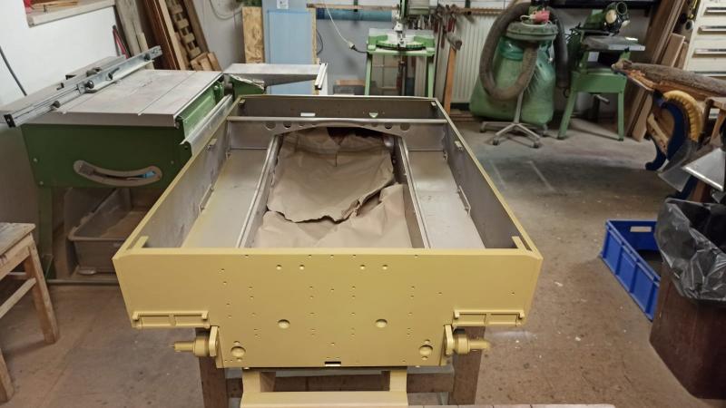 hier hat matthias schon mal schöne vorarbeiten bzw. lackierarbeiten geleistet. meine farbauswahl wäre es nicht gewesen weil mir der sandton zu grünlich ist, aber angeblich, soll die farbe dem original entsprechen.