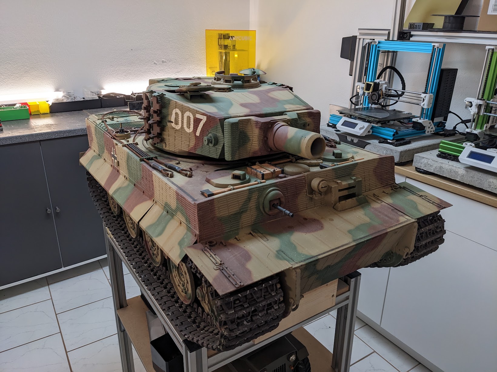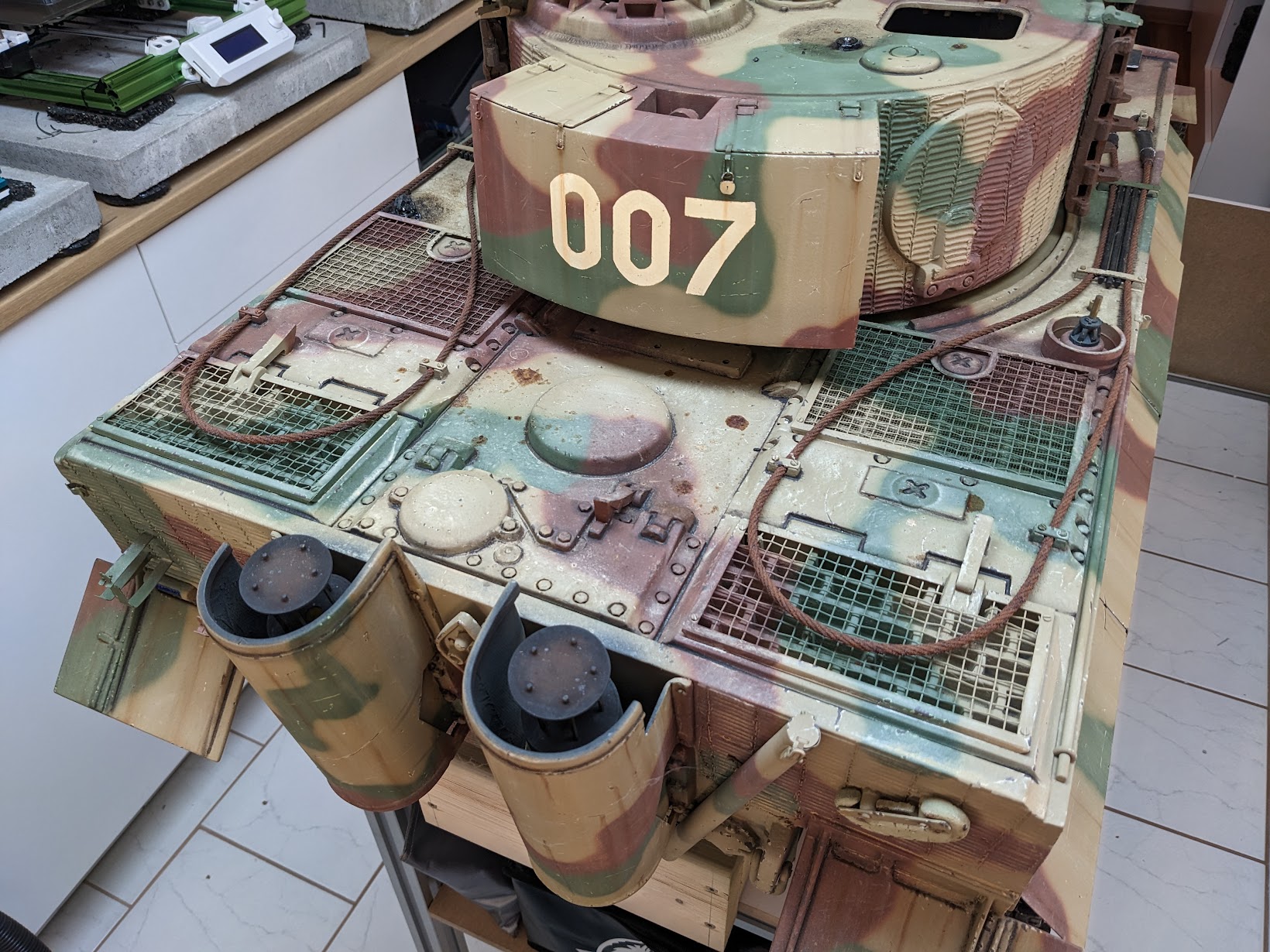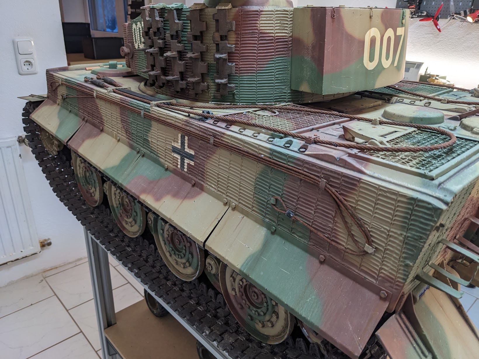 Der Bigtanks Tiger 1 ist meiner Meinung nach super lackiert und die erste Probefahrt hat bestätigt das Bigtanks sehr gute Fahrmodelle baut. Bei den Details hat der Bigtanks gegenüber dem Armortek natürlich das Nachsehen, keine Frage. Da ich aber im ersten Stock wohne hat der Bigtanks den klaren Gewichtsvorteil.
