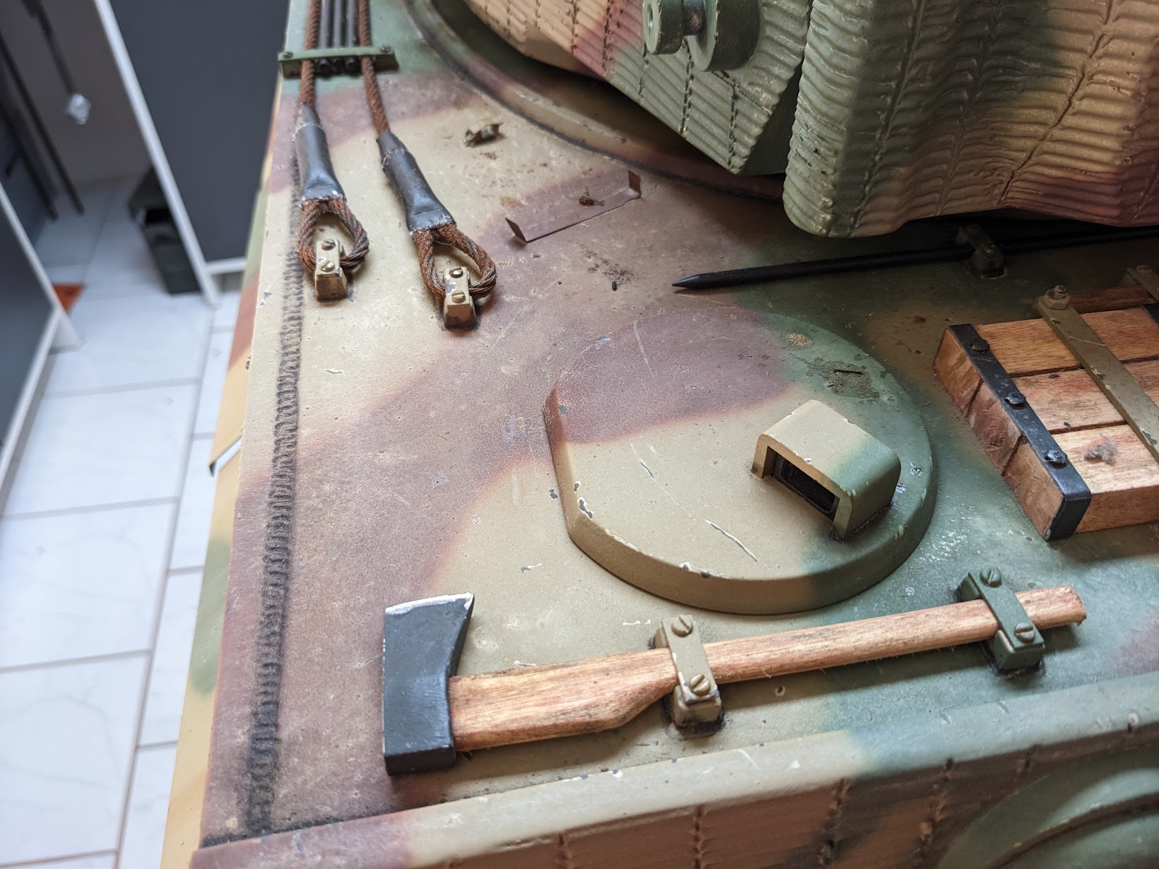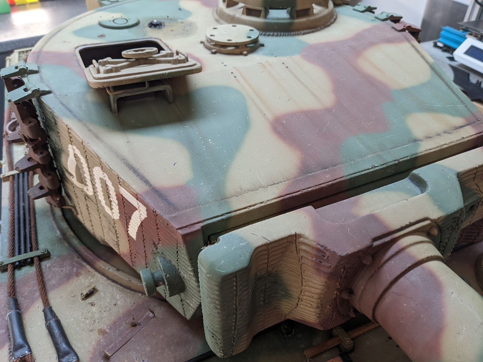 Interessieren würde mich ob man die Version des Tigers bestimmen kann und ob es der aktuellste ist, vielleicht sieht das ja jemand anhand der Bilder. Die Luken auf der Oberwanne und Turm sind beweglich.