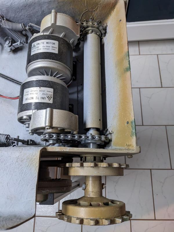 Die Lösung mit den Motoren und den gegenseitig abstützenden Antriebsachen ist simpel aber läuft gut!
