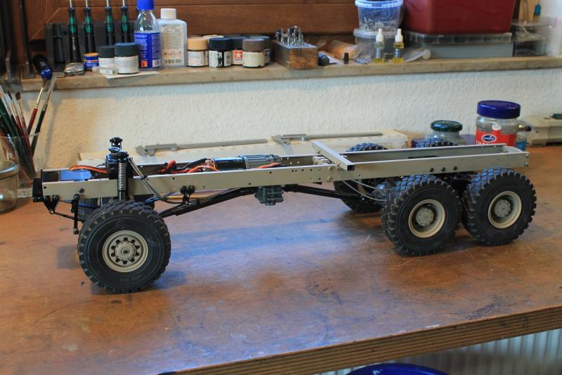 Also Umbau. Den Zetros hatte ich mir schon letztes Jahr gekauft und auf der Messe in Leipzig ausgiebig getestet. Er verfügt über ein 2 Ganggetriebe und alle Achsen lassen sich sperren. Feinfühlig zu fahren ist er auch. Also perfekt für meine Bedürfnisse.