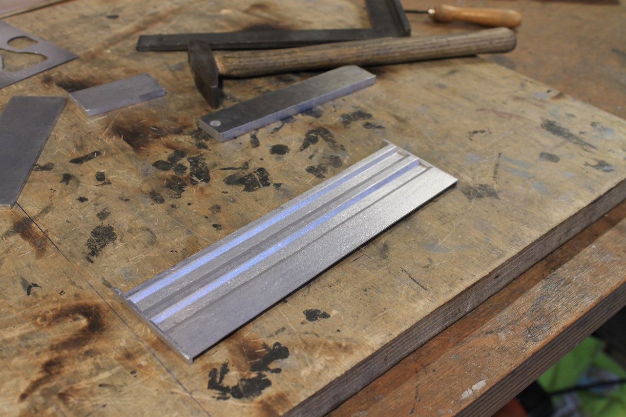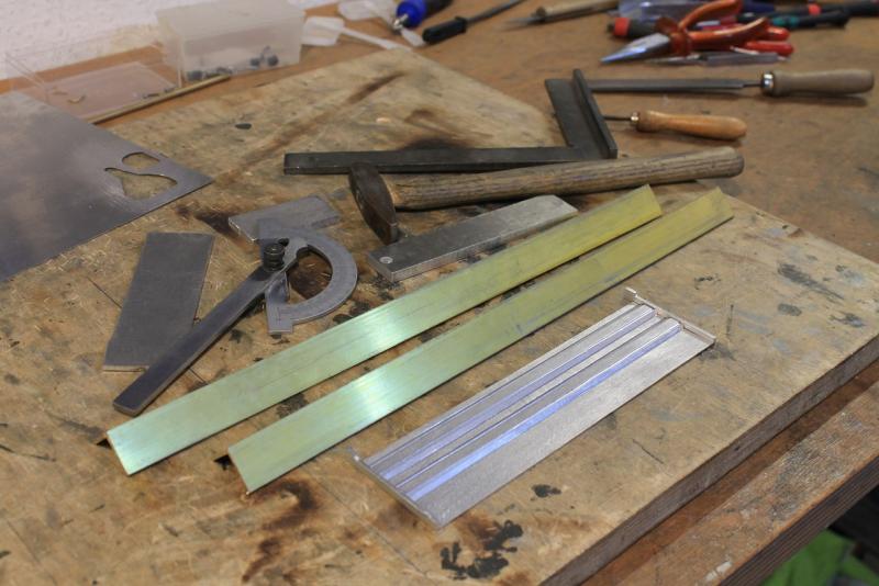 Wenn ich scharfkantig biegen will, verwende ich Messingwinkel und Alu Stemmer.