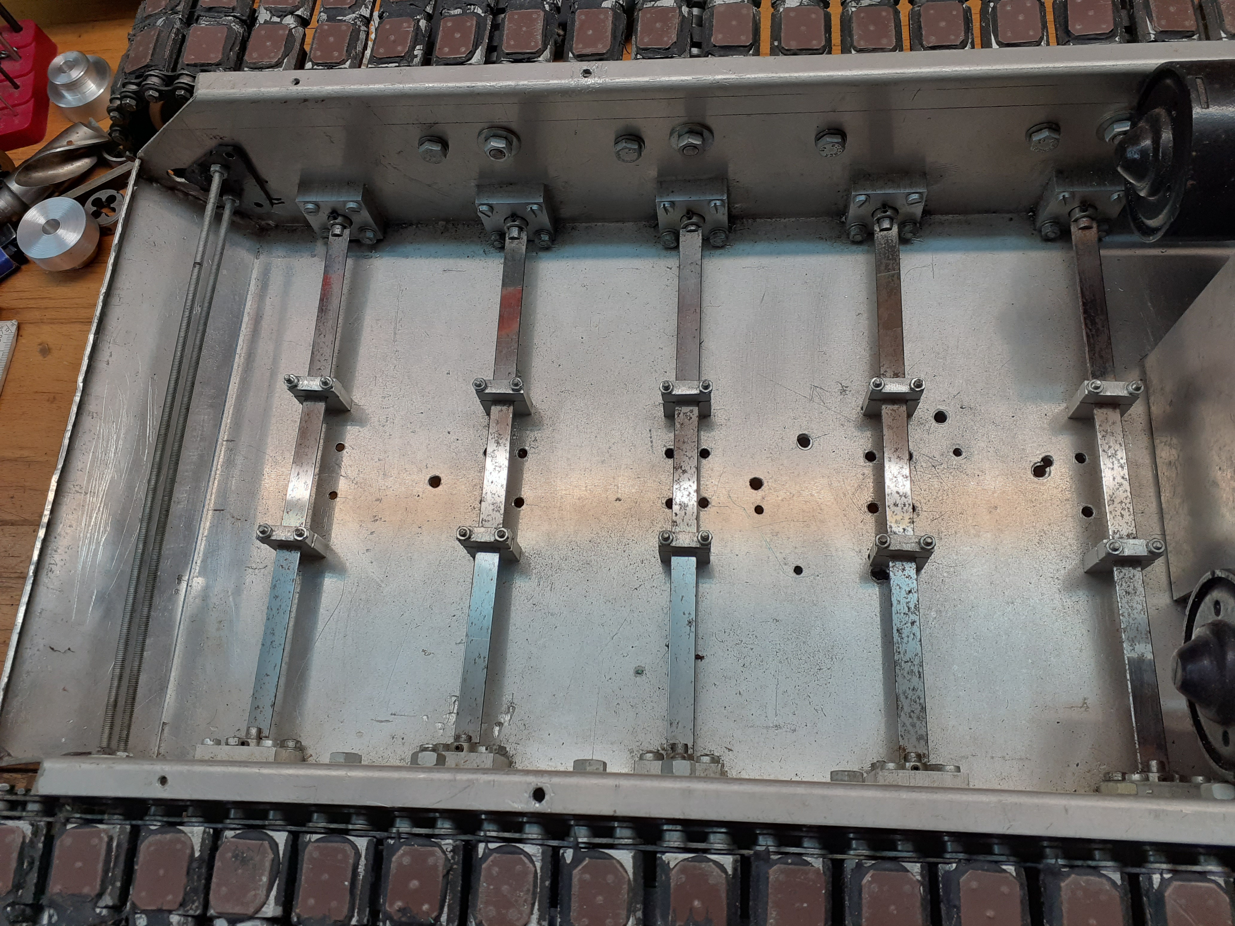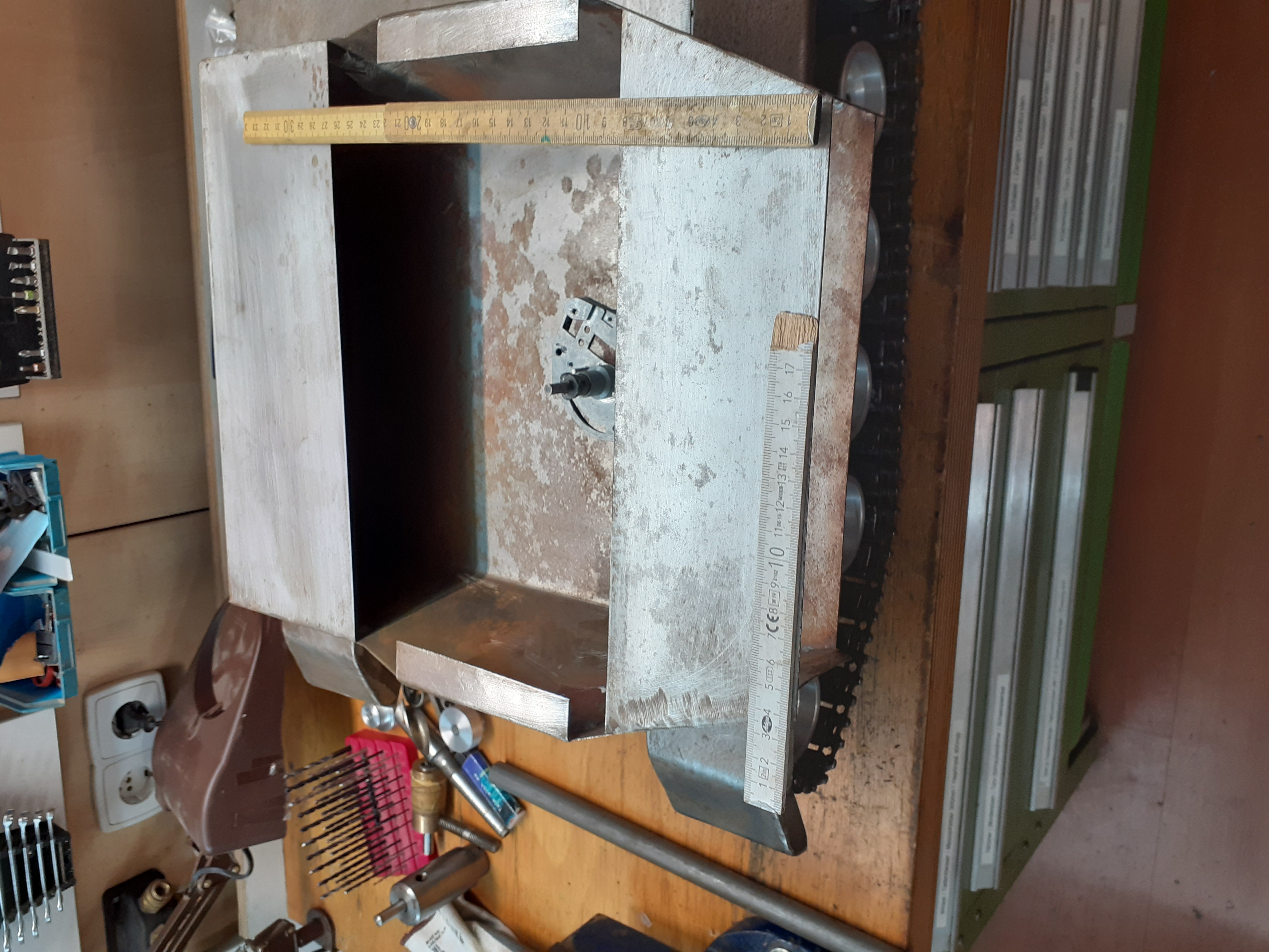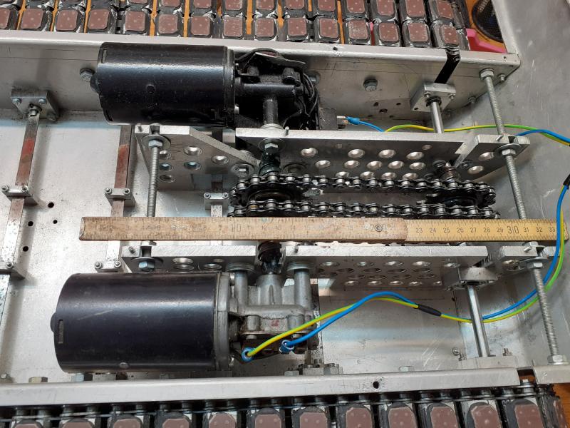 Aluminium .Als Antrieb dienen 2 Scheibenwischermotoren die über Kette auf