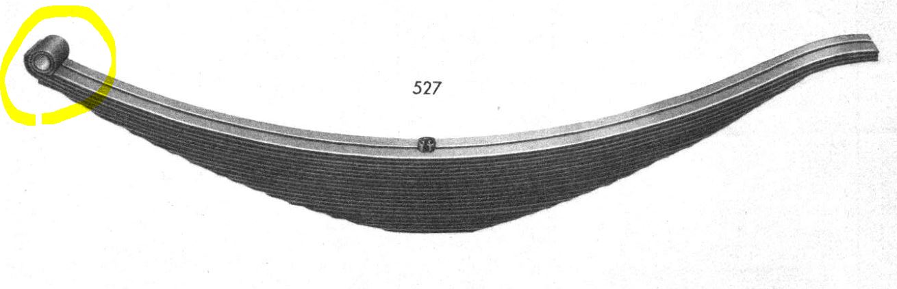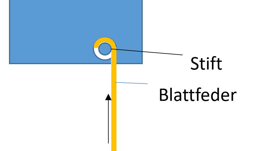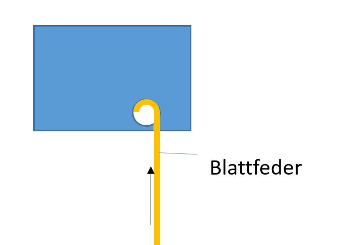 Leider sieht man am linken Ende der Blattfeder die Öse nicht, diese wird durch den Halter verdeckt.