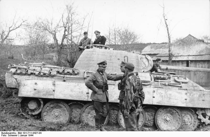 Das verwahrloste Aussehen des Panzers wirkt verwegen, spricht aber gegen die militärische Ordnung. Der Panzer war überlebenswichtig und man hat ihn daher in Schuß gehalten. Habe die mal ein paar Patherfotos von 1944 und 1945 aus Google herausgesucht. Teilweise wurden Teile des Fahrwerks als Ersatzteile mitgeführt, Ketten & Schachtelräder, aber sonst kaum was. Man erkennt auch gut die Seitenschürzen, selbst bei abgeschossenen Panthern. Entweder abgefallen oder gerade.