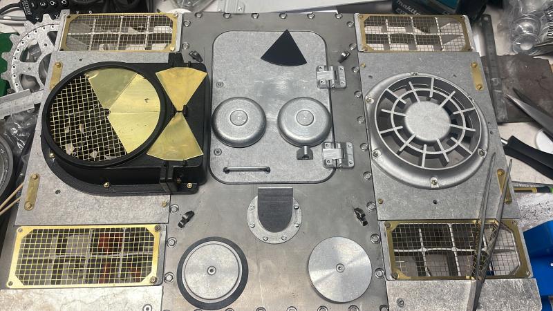 Ich habe am Heck des Panthers weiter geschraubt . Einige Schrauben wurden wieder durch Modellschrauben ersetzt . Es ist noch nicht fertig , es fehlt noch einiges also bitte etwas Geduld . Die Kampfraumheizung wurde angepasst und ebenfalls platziert .