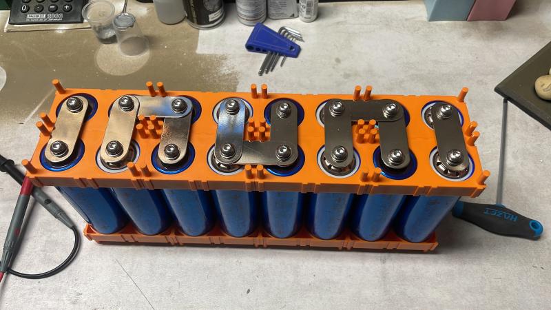 Hier der Akku . Der Akku ist inzwischen fertig verkabelt inkl. der Balancerkabel .