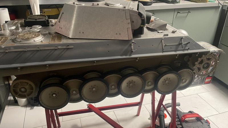 Hier geht es auch weiter . In der letzten Zeit habe ich die Laufrollen montiert . An der Mechanik zum heben der KwK ging es auch voran .